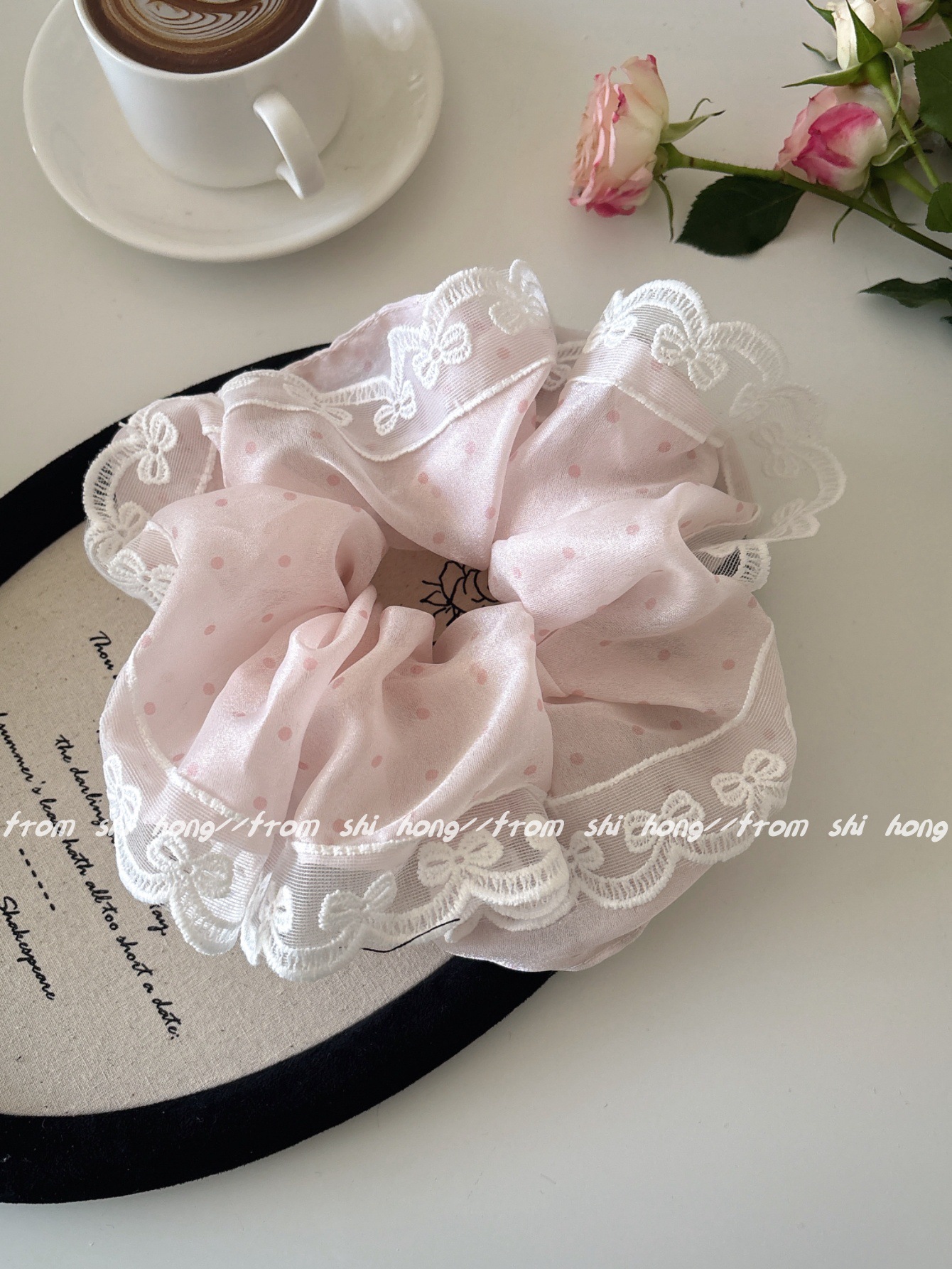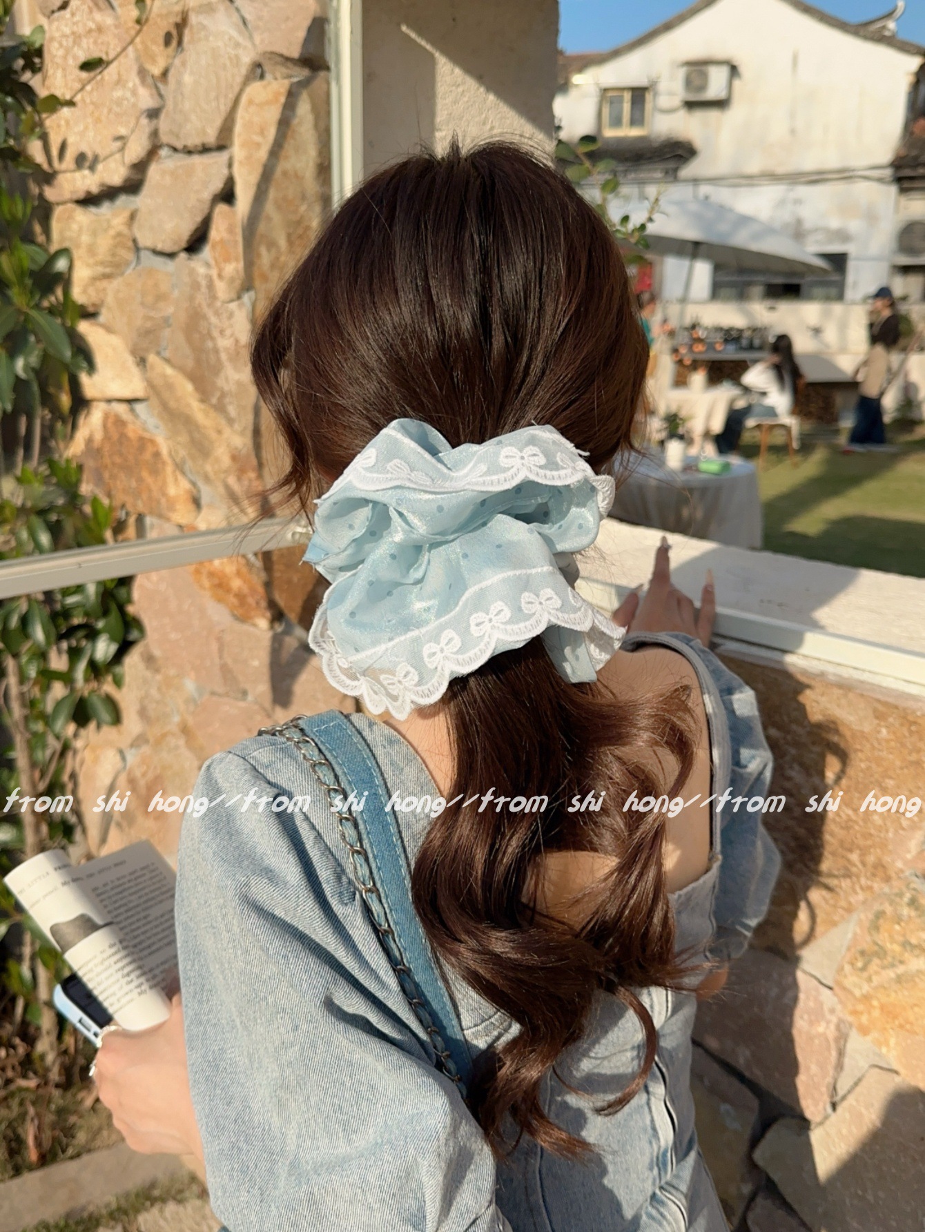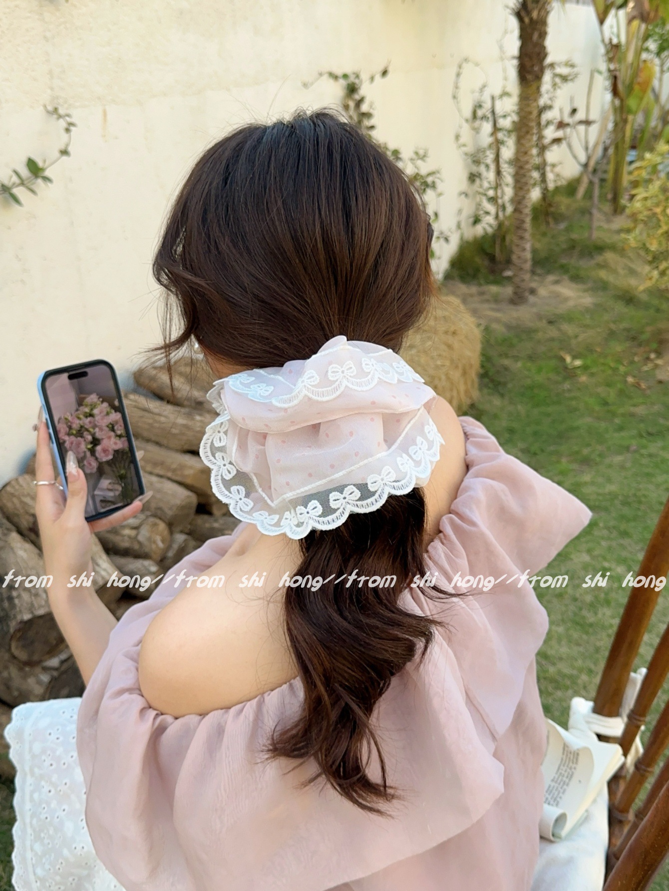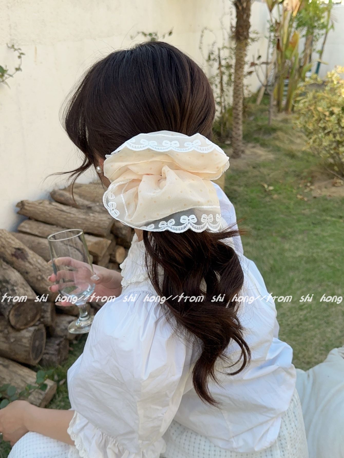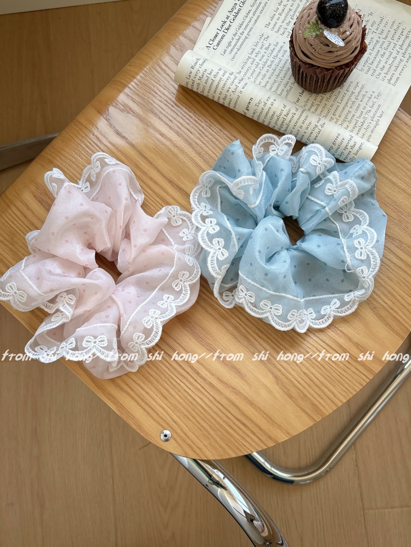 여성용 달콤한 한국식 헤어 링 헤어 액세서리 발레 윈드 웨이브 도트 더블 레이스 레이스 대형 장내 헤어 링 부드러운 헤어 로프 헤드스토어 가기