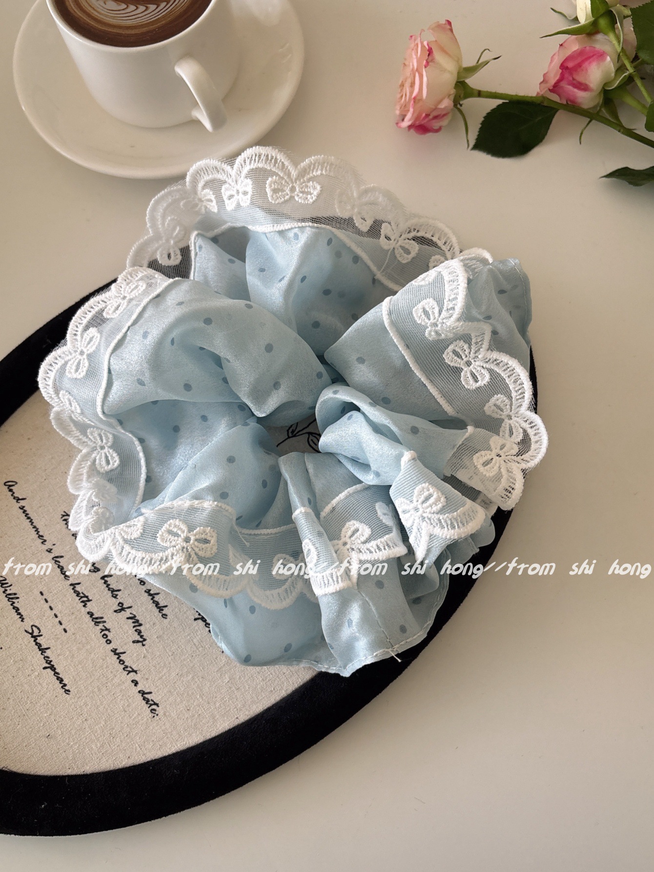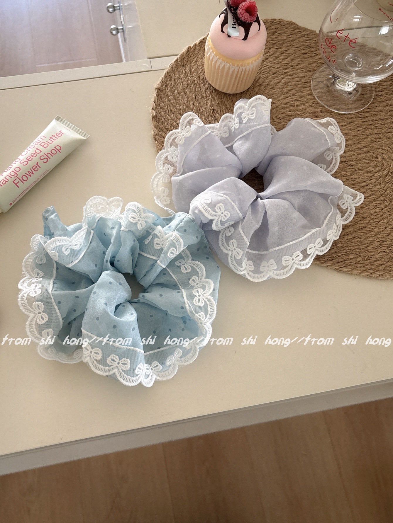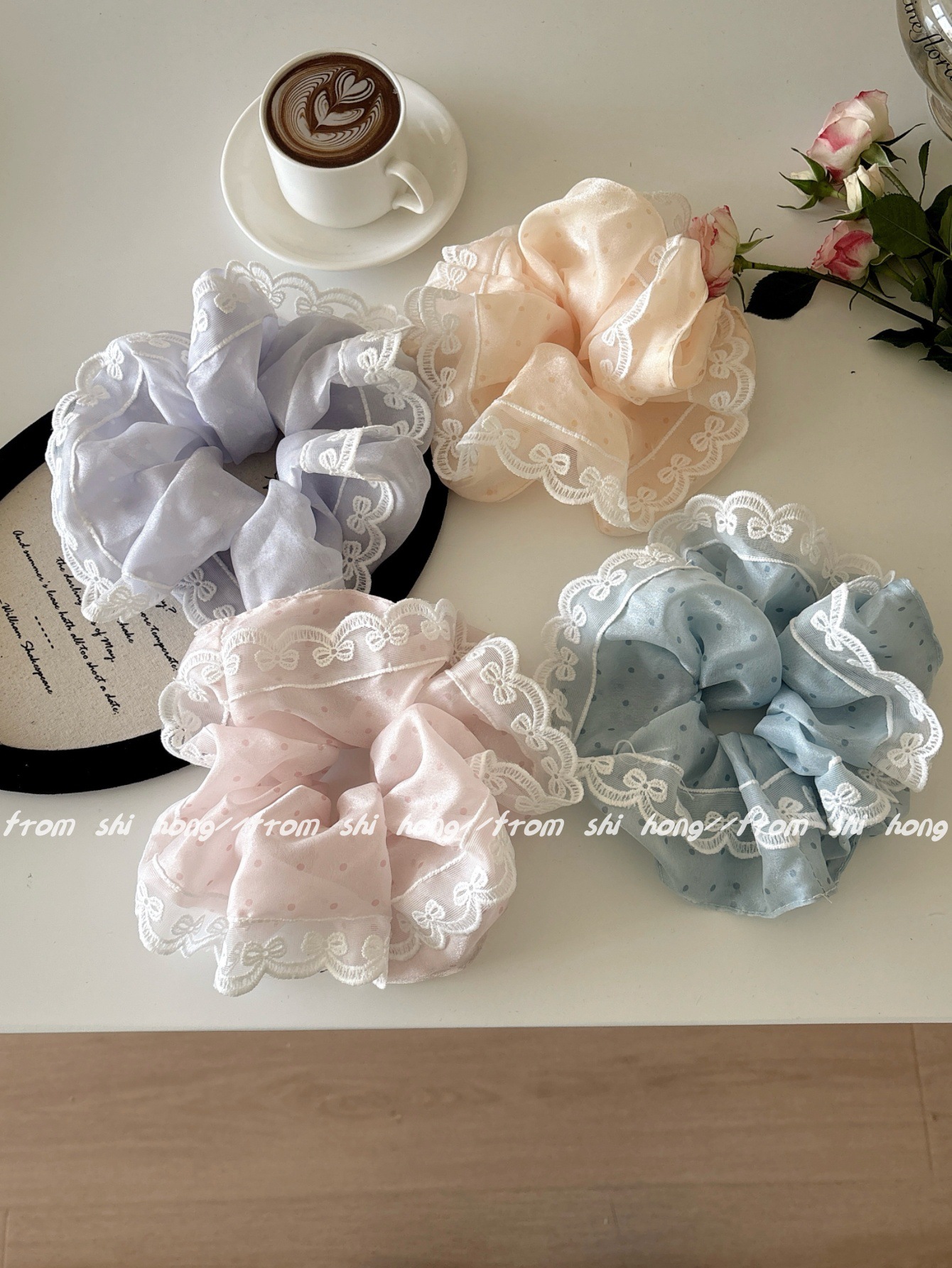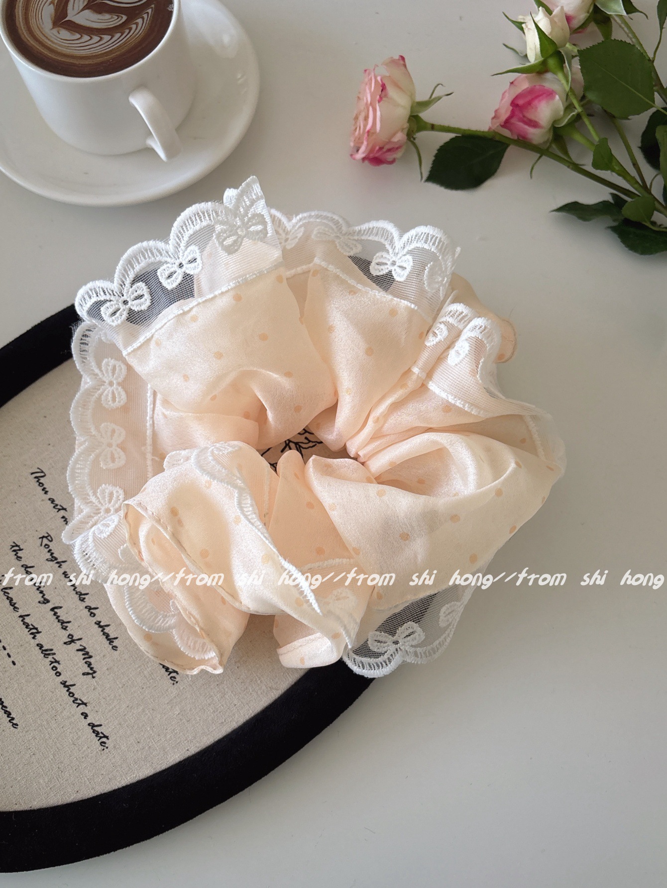 여성용 달콤한 한국식 헤어 링 헤어 액세서리 발레 윈드 웨이브 도트 더블 레이스 레이스 대형 장내 헤어 링 부드러운 헤어 로프 헤드스토어 가기