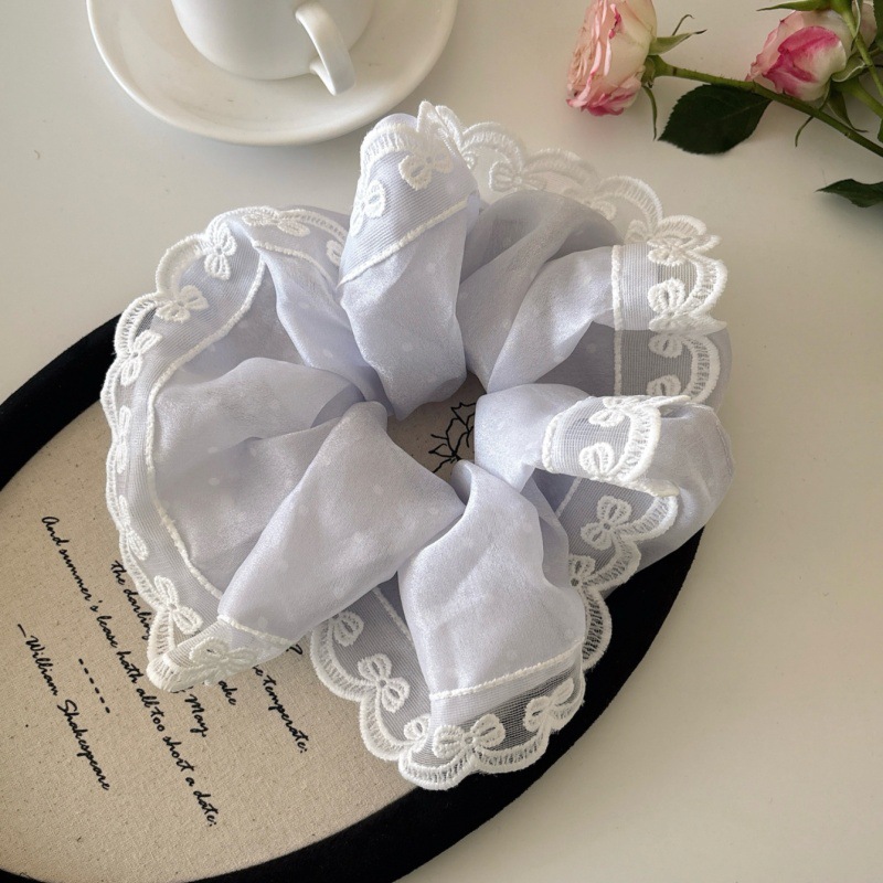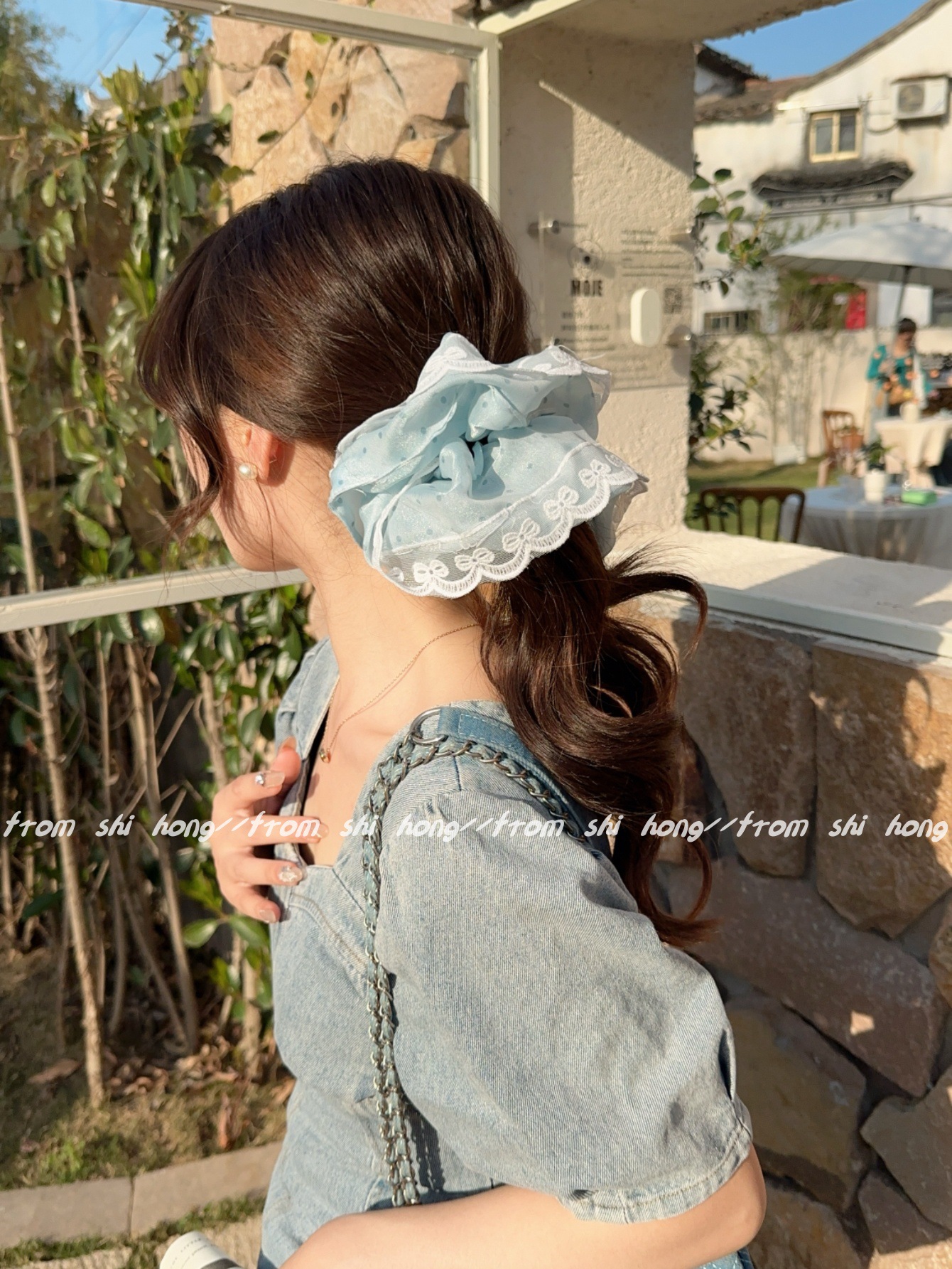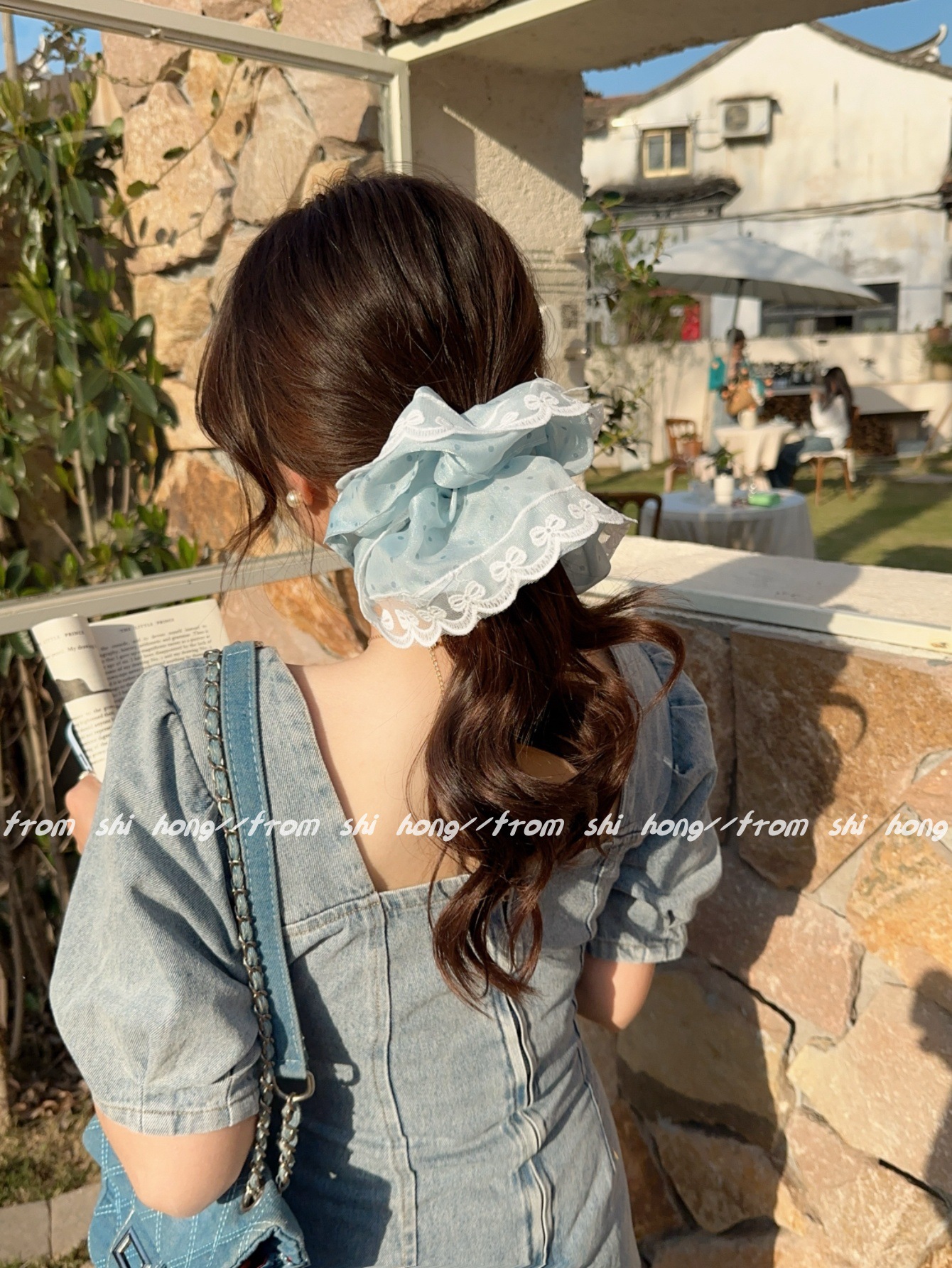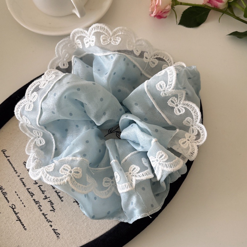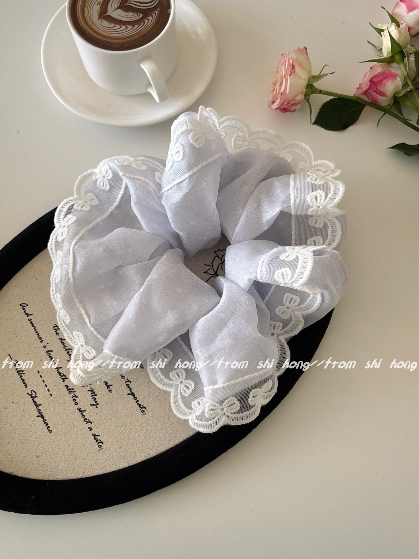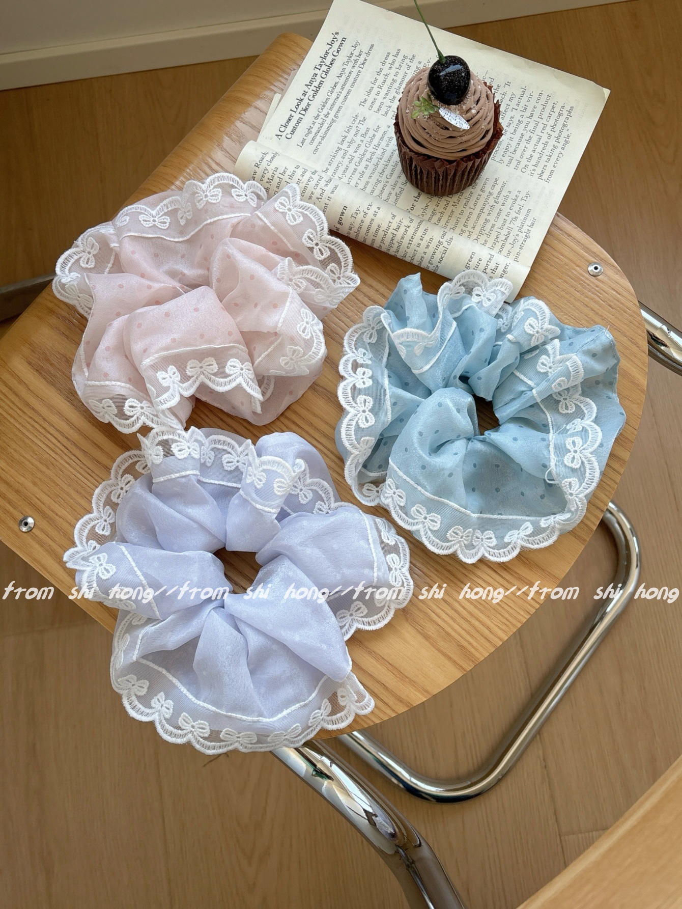 여성용 달콤한 한국식 헤어 링 헤어 액세서리 발레 윈드 웨이브 도트 더블 레이스 레이스 대형 장내 헤어 링 부드러운 헤어 로프 헤드스토어 가기