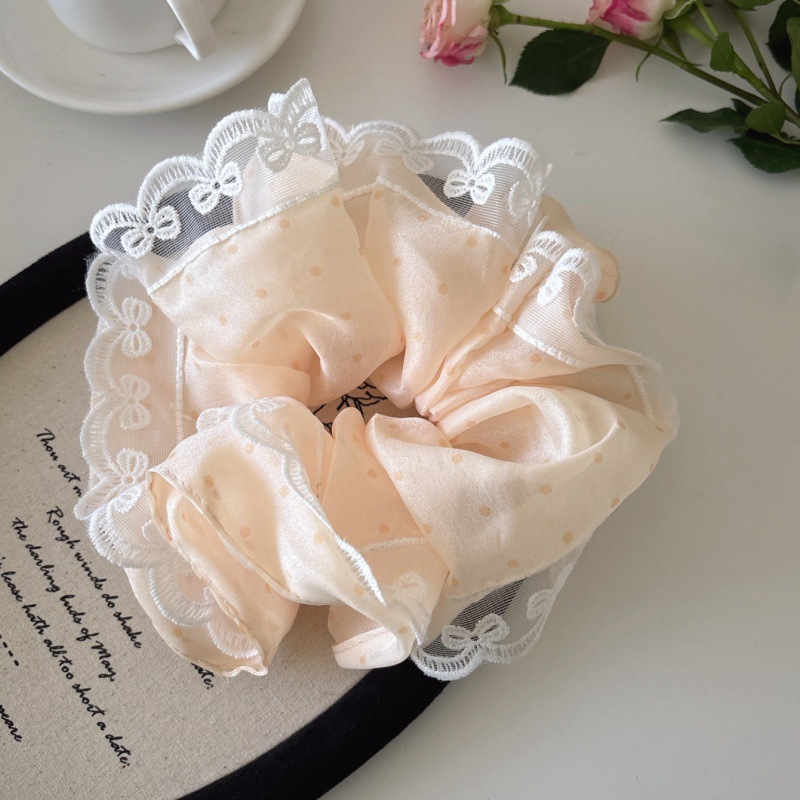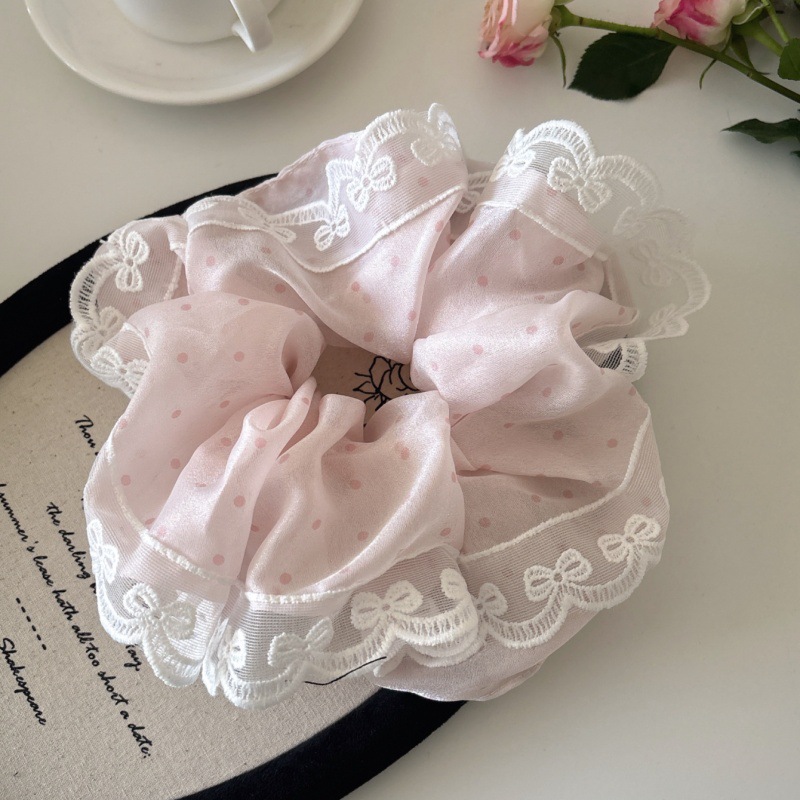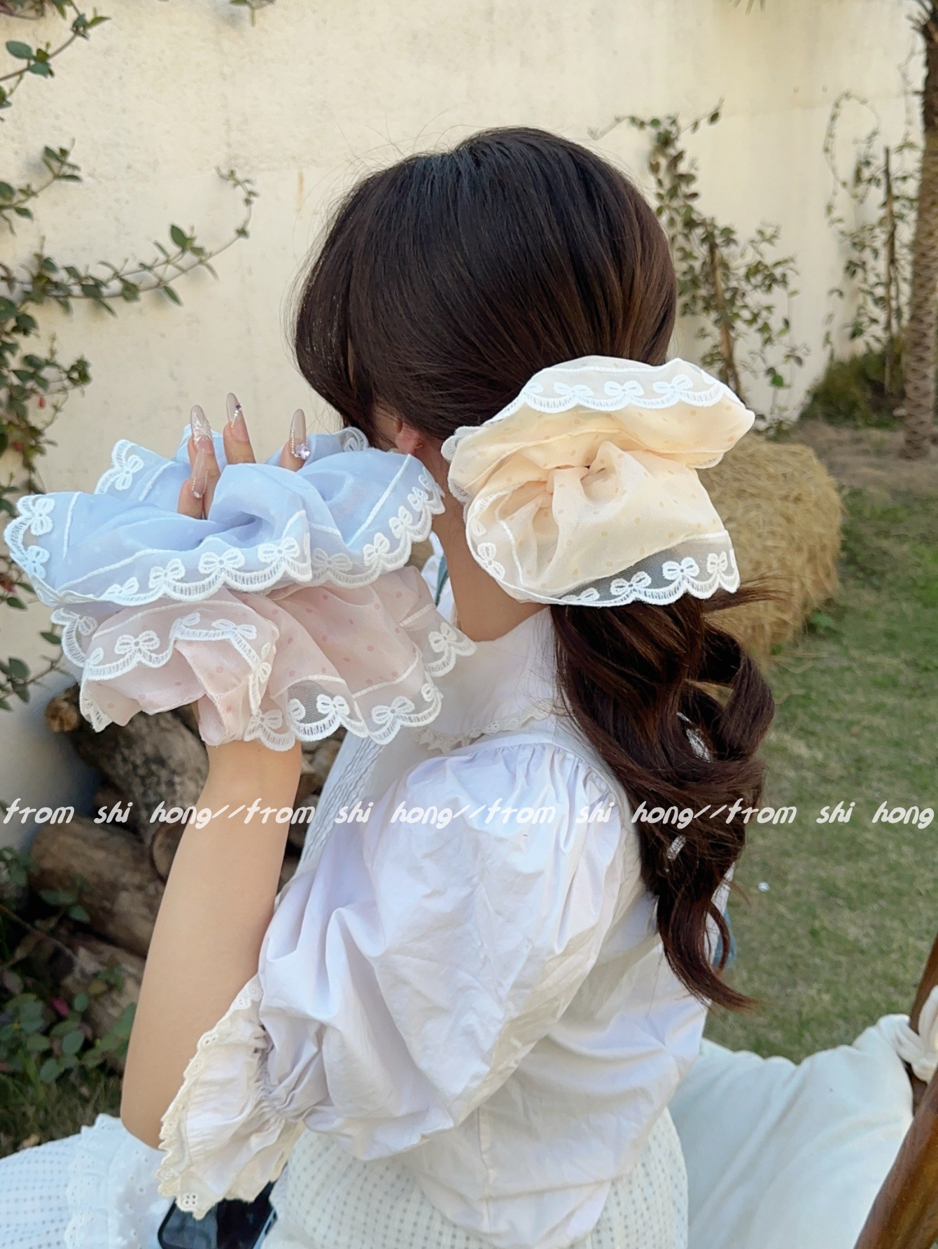 여성용 달콤한 한국식 헤어 링 헤어 액세서리 발레 윈드 웨이브 도트 더블 레이스 레이스 대형 장내 헤어 링 부드러운 헤어 로프 헤드