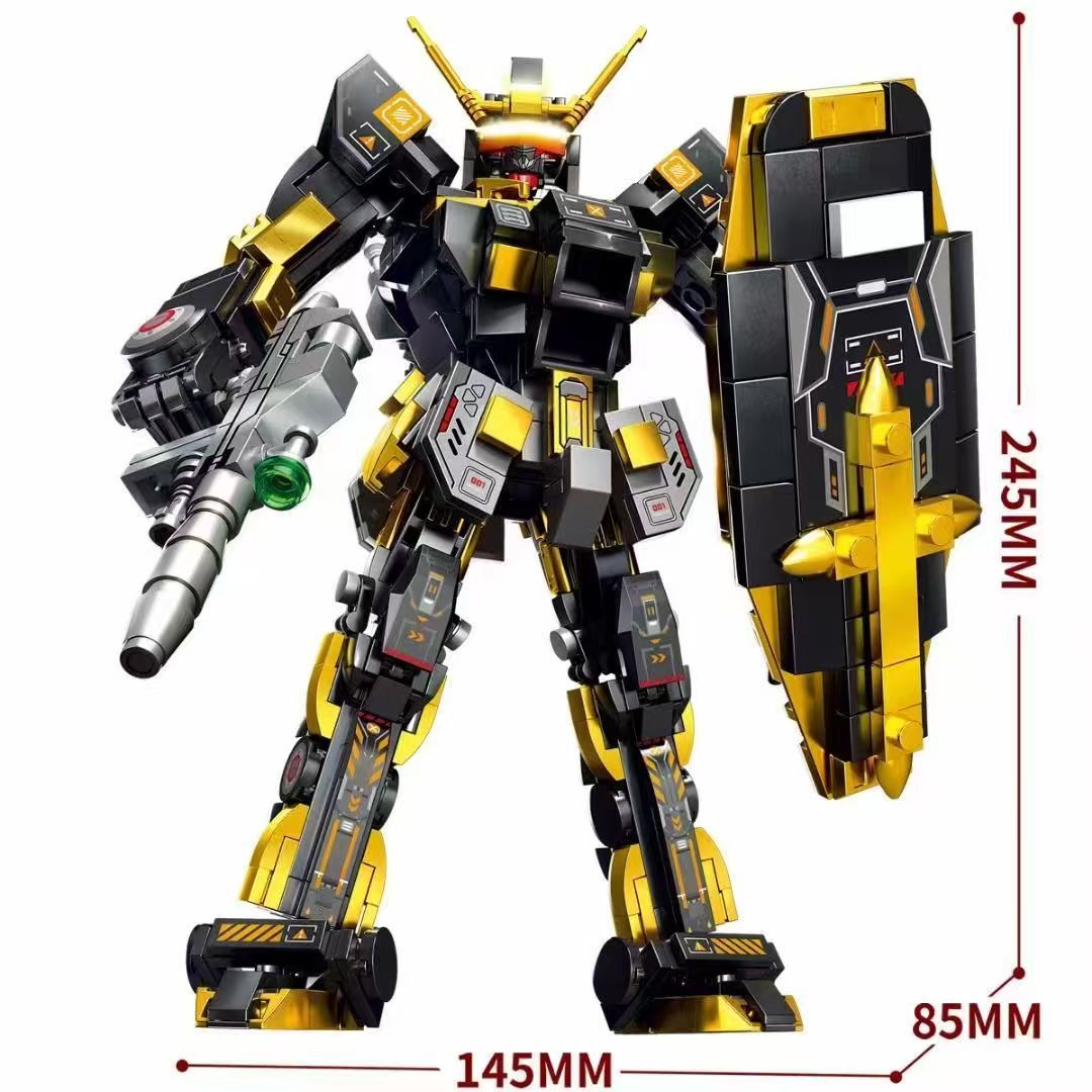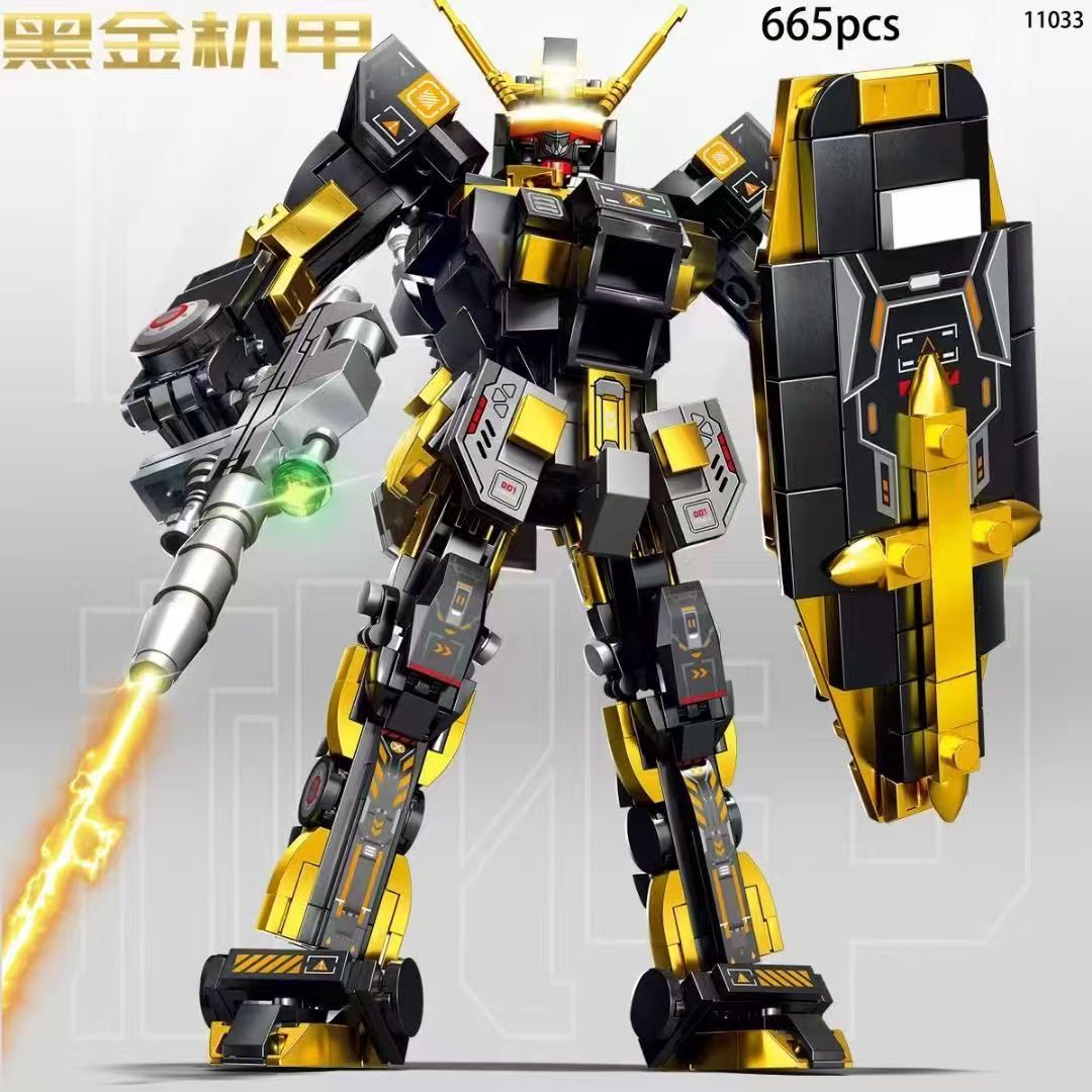 Leyi 11033 블랙 골드 메카 퍼즐 퍼즐 소년의 고난도 빌딩 블록 전문가 장난감 접합 다기능스토어 가기