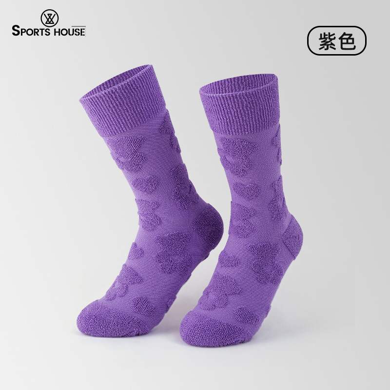 스포츠& # 39;sHouse 여성용 종아리 중간 양말 크로스 컨트리 러닝 양말 가볍고 통기성이 뛰어난 하이킹 양말 타월 바닥 속건성 스포츠 양말