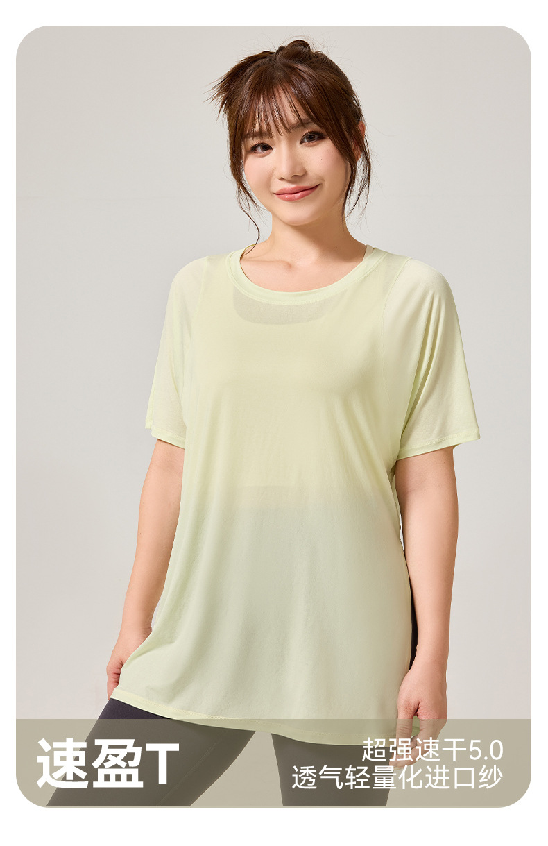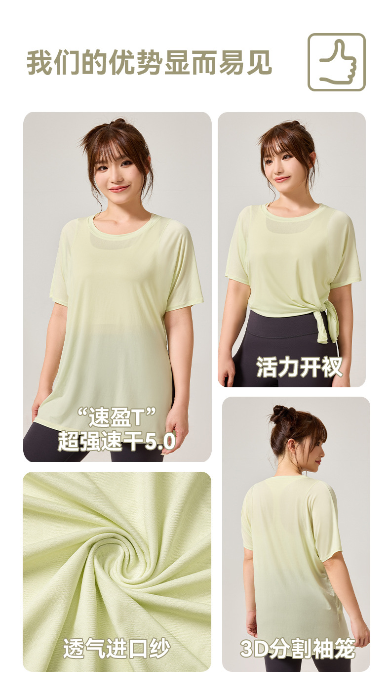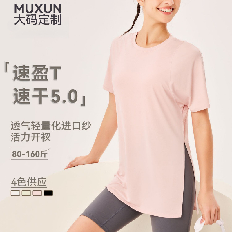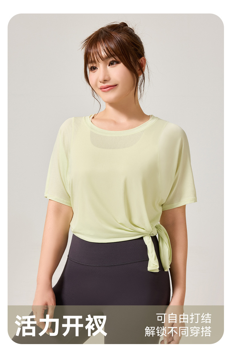 대외 무역 플러스 사이즈 스포츠 요가복 짧은 탑 루즈 라운드 넥 메쉬 스플 라이스 속건성 아름다운 등 반팔 피트니스웨어스토어 가기