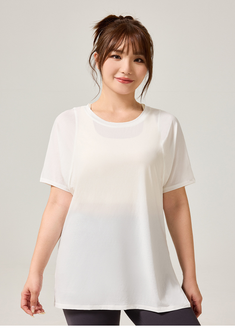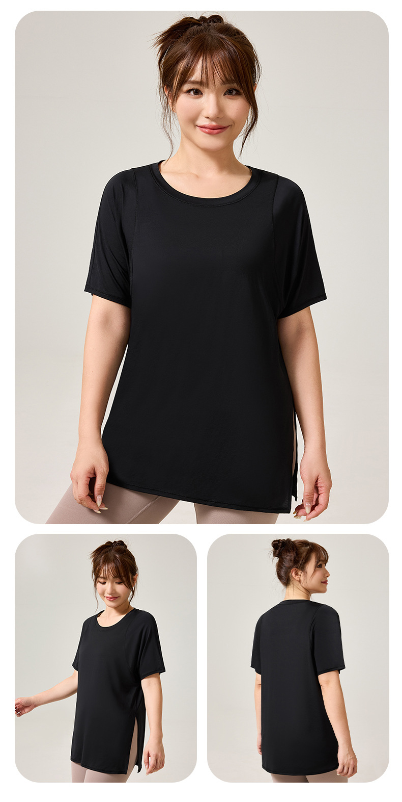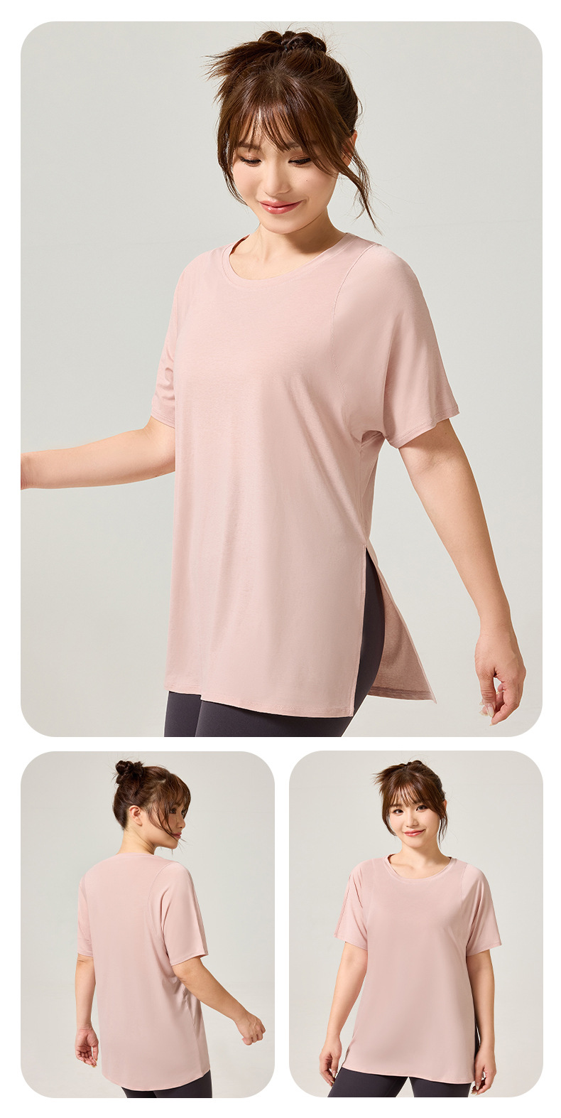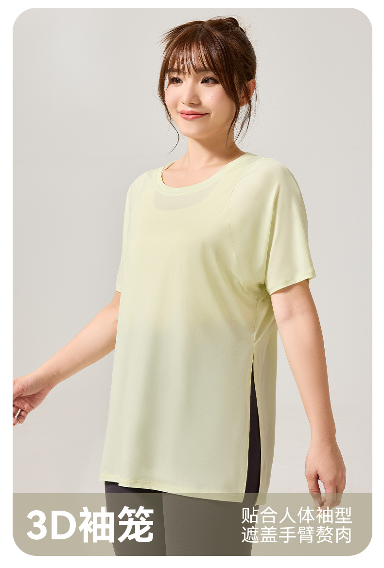 대외 무역 플러스 사이즈 스포츠 요가복 짧은 탑 루즈 라운드 넥 메쉬 스플 라이스 속건성 아름다운 등 반팔 피트니스웨어스토어 가기
