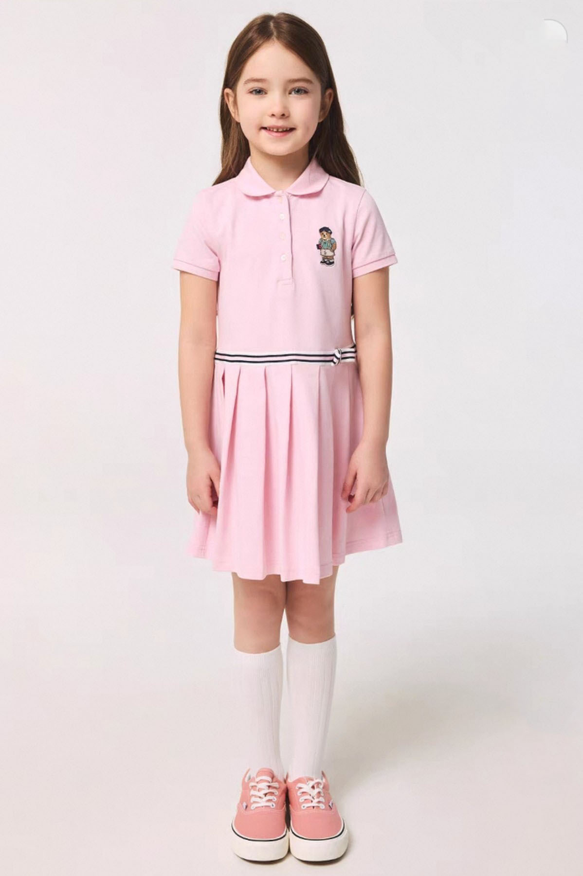 25 여름 새 소녀 메쉬 옷깃 폴로 셔츠 원피스 부드럽고 편안한 슬림 대학 스타일 어린이 치마스토어 가기