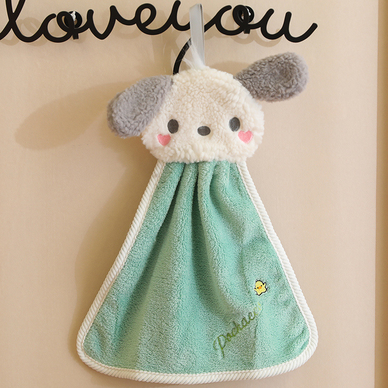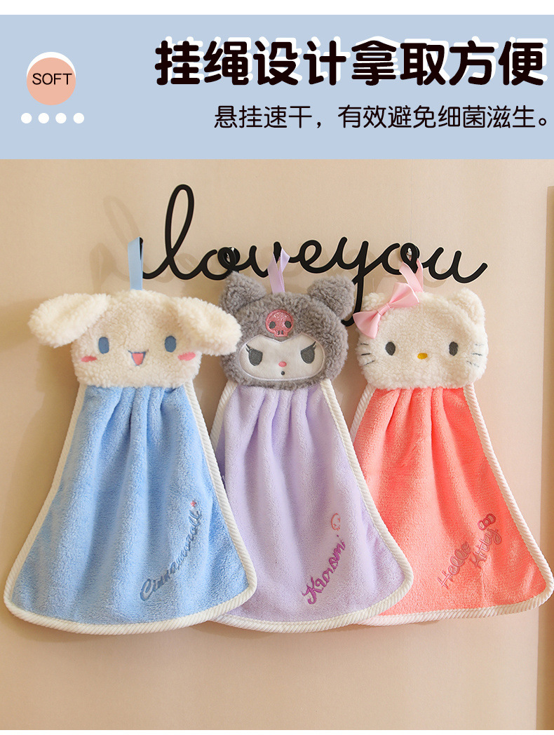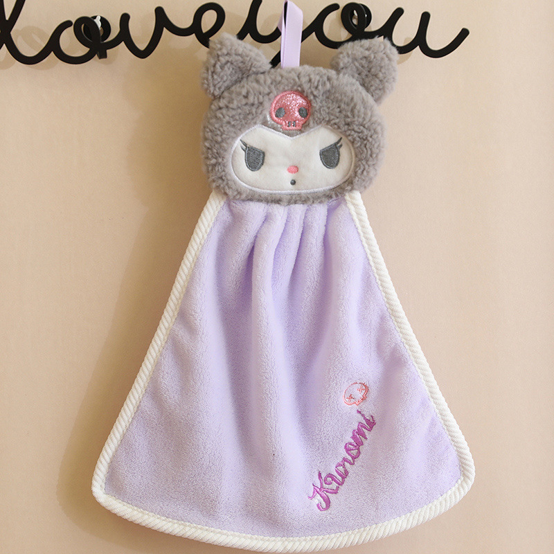 ∝쿠로미 어린이용 걸이형 손수건 만화 산호벨벳 흡수성 작은 수건 손수건 주방 및 욕실 손 닦기