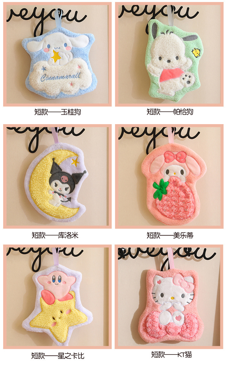 ∝쿠로미 어린이용 걸이형 손수건 만화 산호벨벳 흡수성 작은 수건 손수건 주방 및 욕실 손 닦기스토어 가기