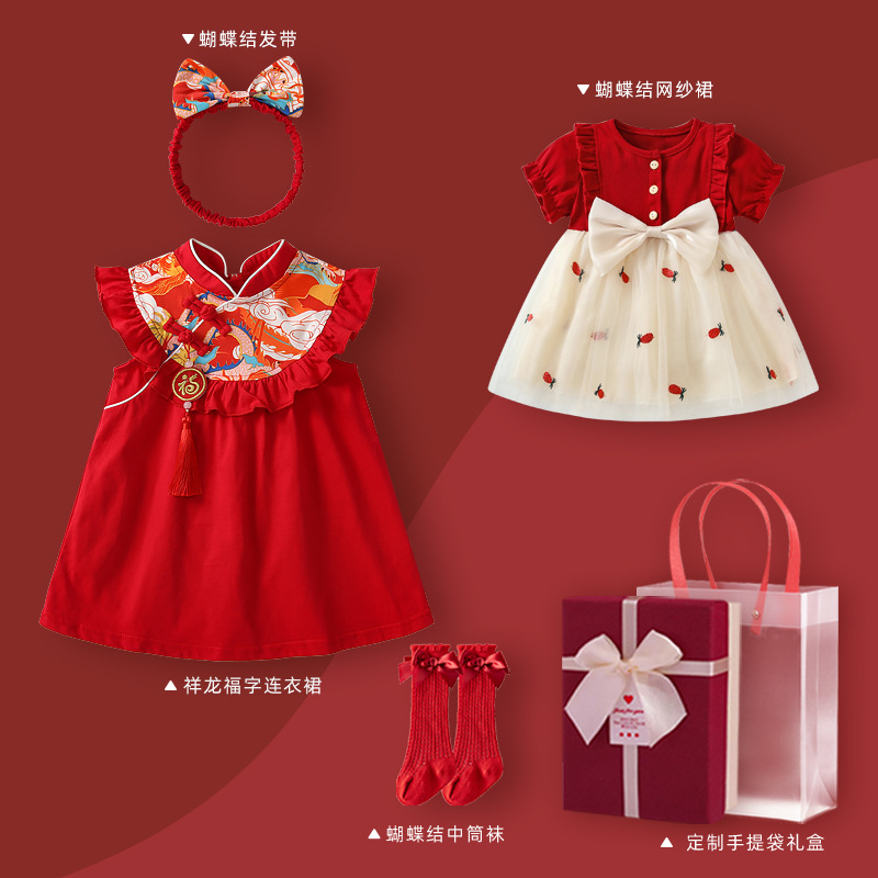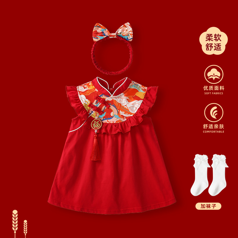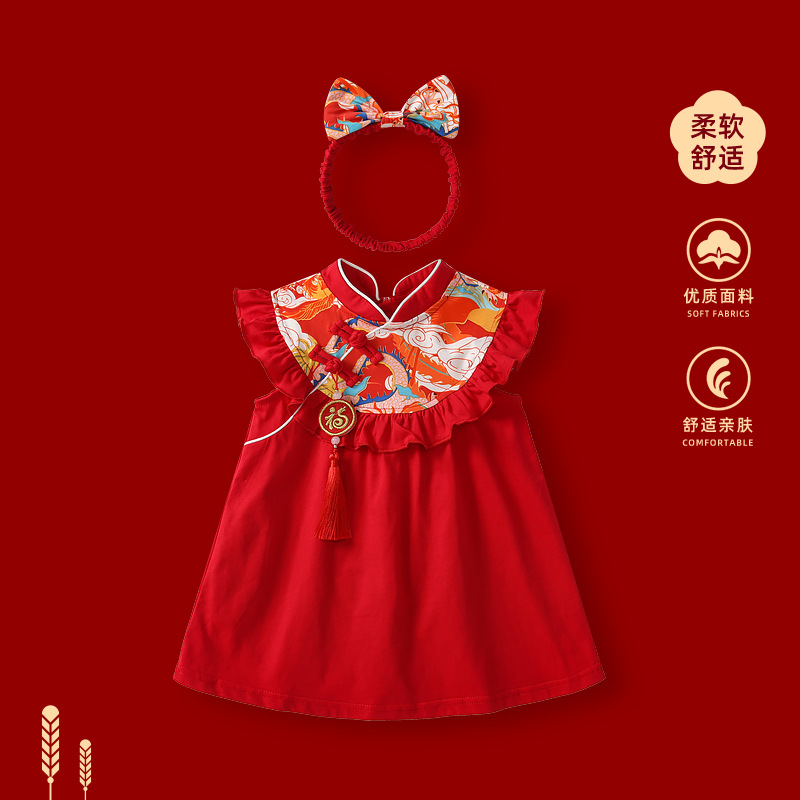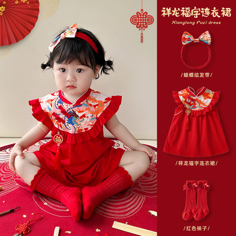 1 년 된 소녀 아기 원피스 여름 아기 옷 공주 원피스 1 년 된 주 연회 새로운 중국 스타일의 원피스 소녀