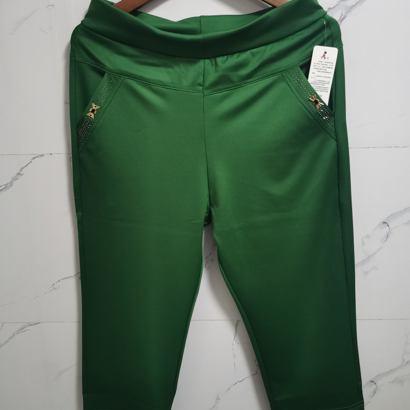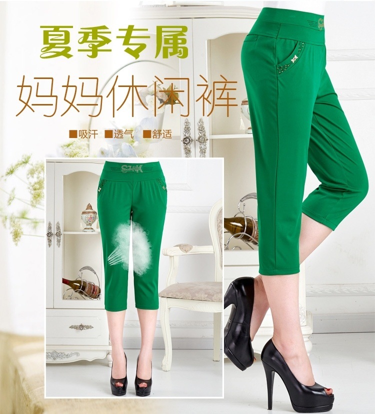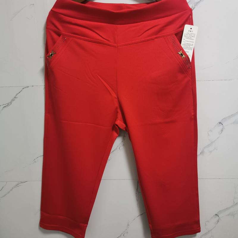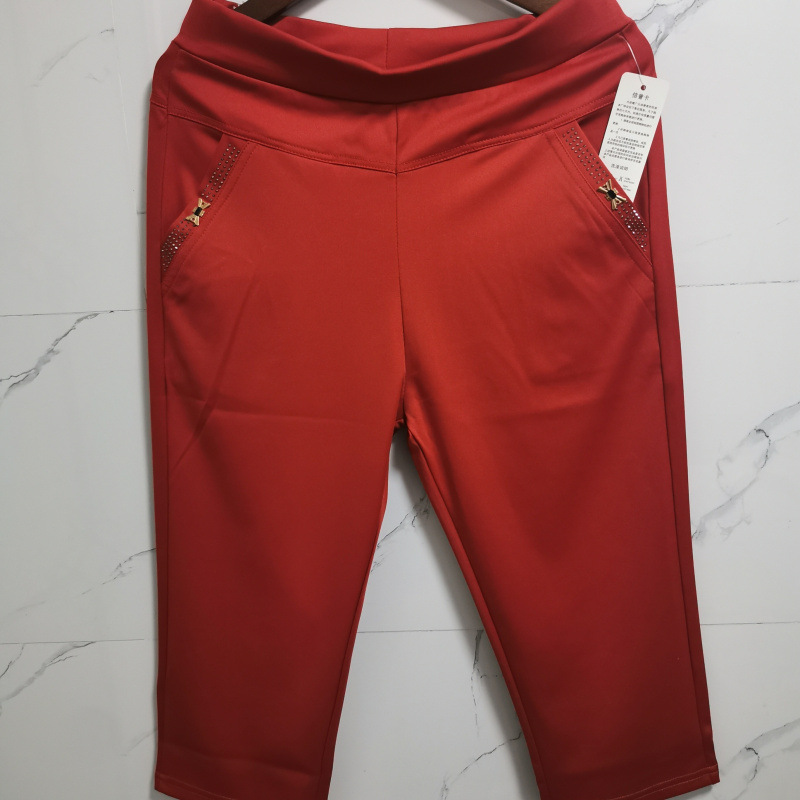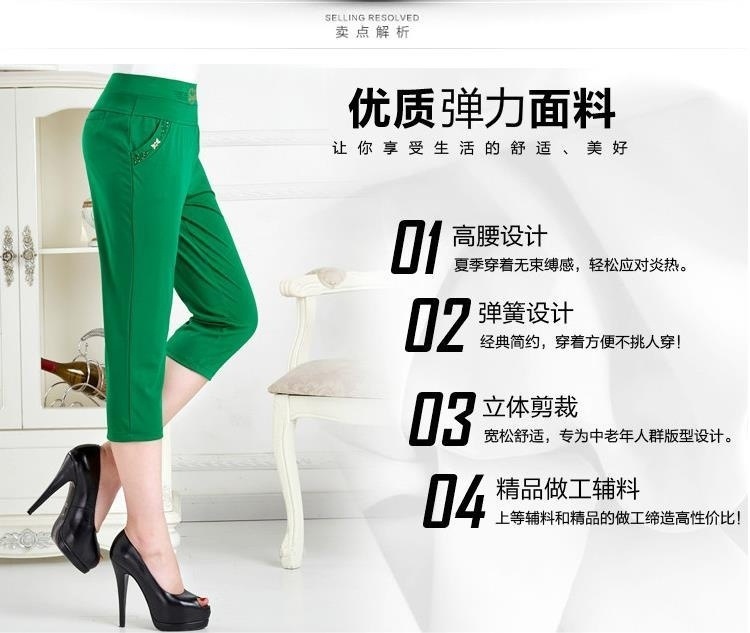 2025 여름 엄마의 캐주얼 바지 중년 및 노인 여성 7 점 반바지 탄성 허리 탄성 중간 길이 바지 얇은 레깅스스토어 가기