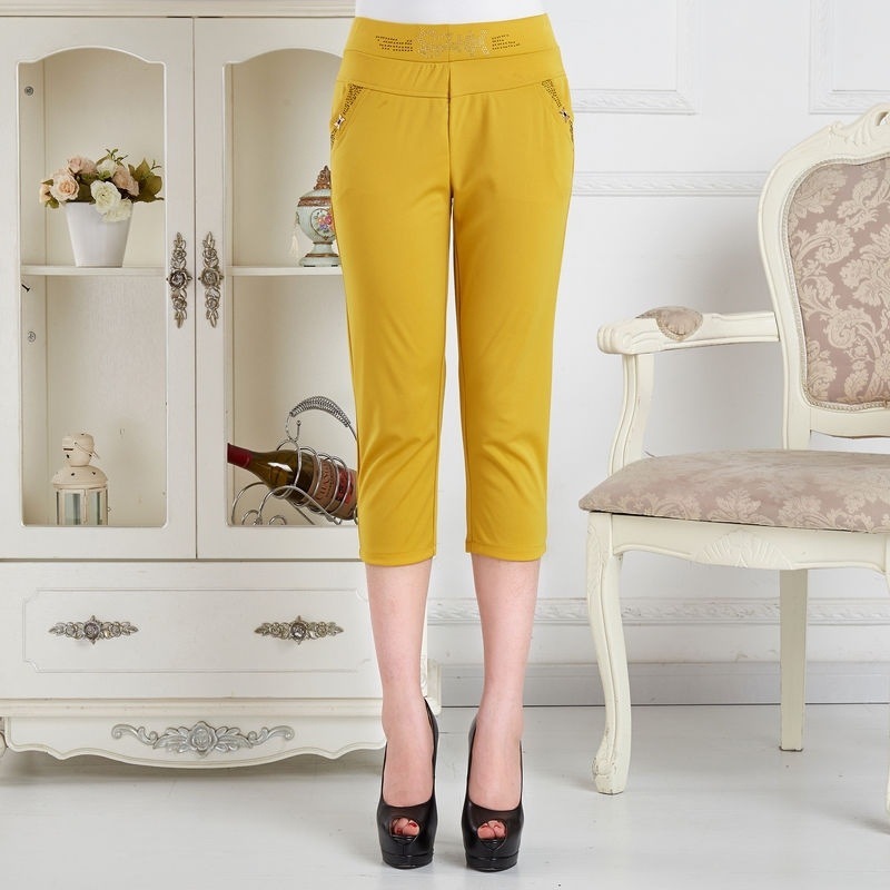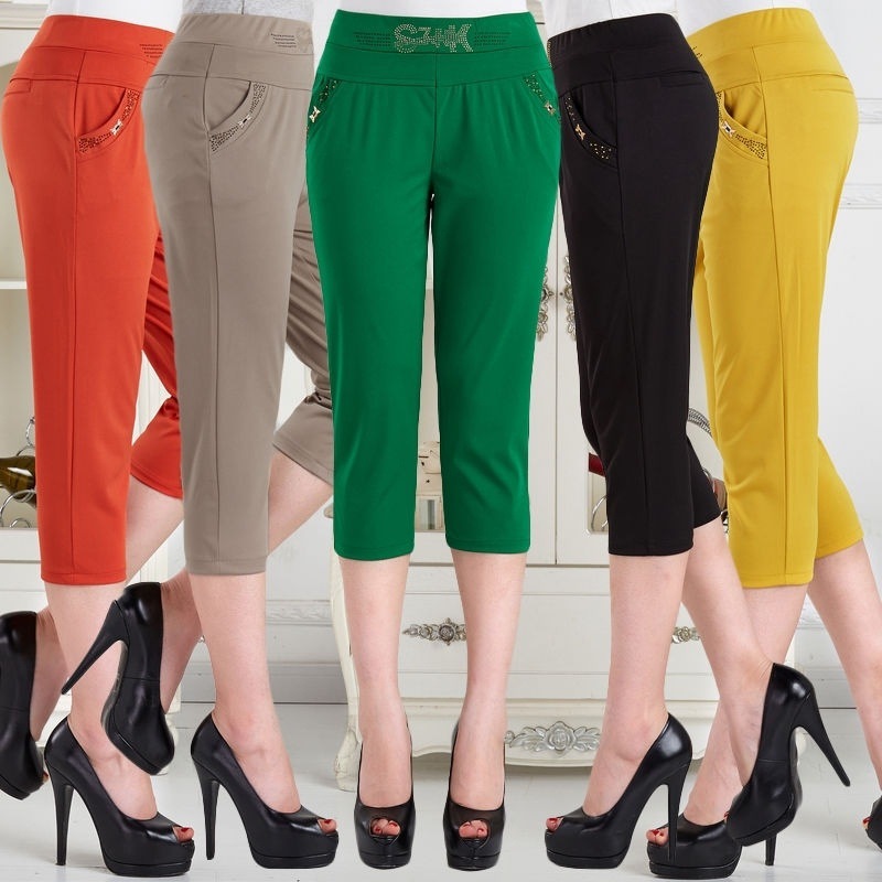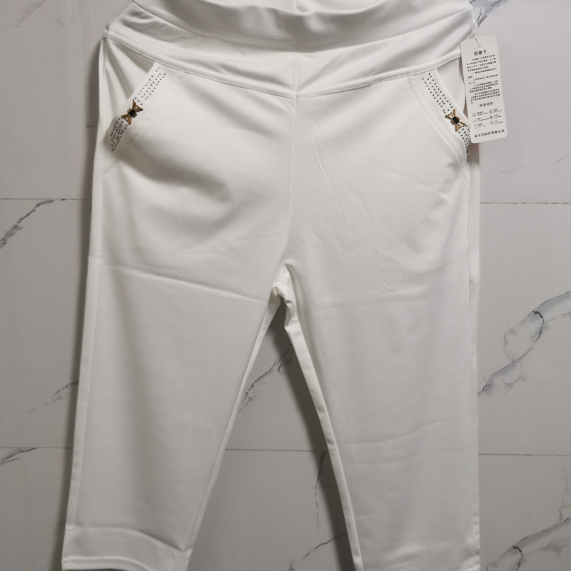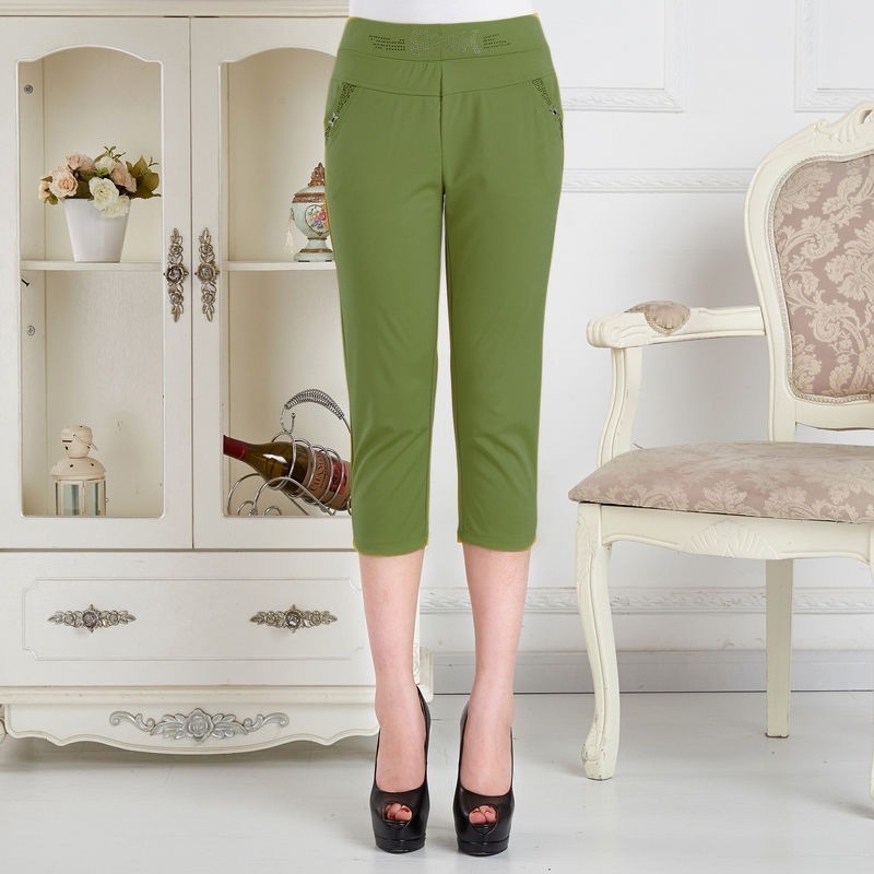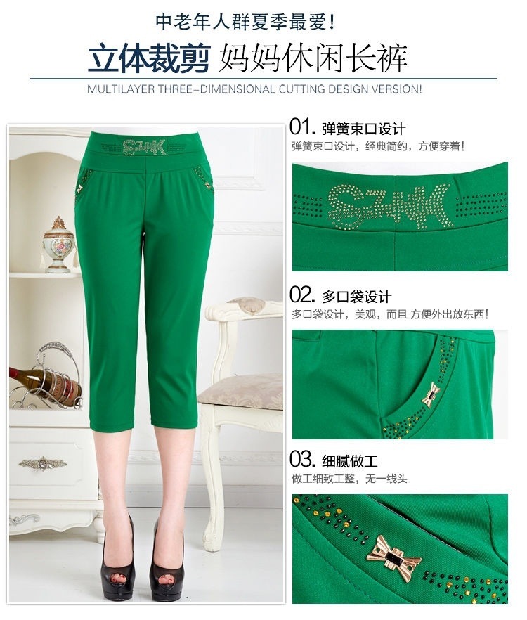 2025 여름 엄마의 캐주얼 바지 중년 및 노인 여성 7 점 반바지 탄성 허리 탄성 중간 길이 바지 얇은 레깅스스토어 가기