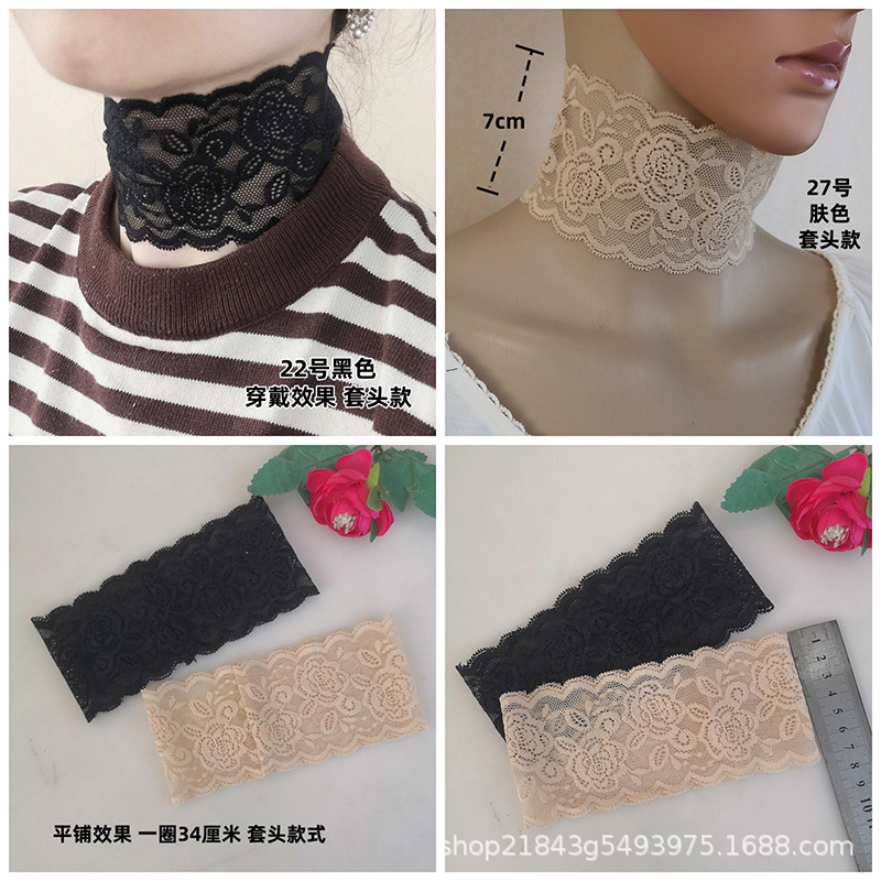 여성용 풀오버 넥워머, 얇은 넥워머, 탄성 레이스 칼라, 흉터 커버, 쇄골 목걸이, 넥워머, 가짜 칼라, 여성용 넥워머스토어 가기