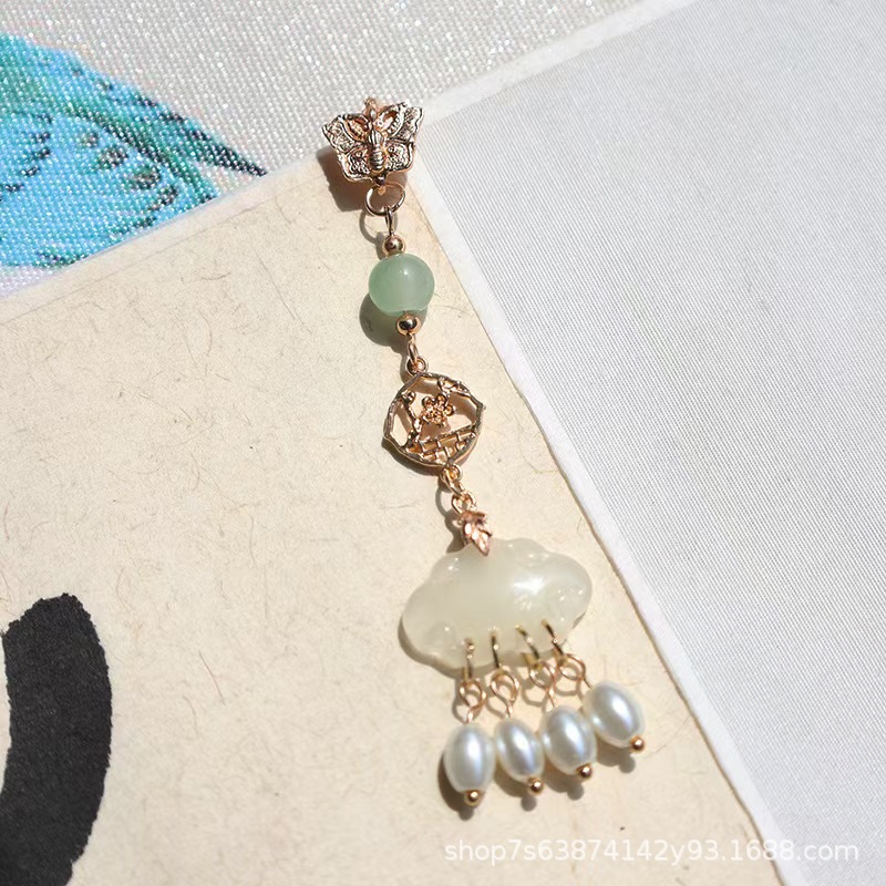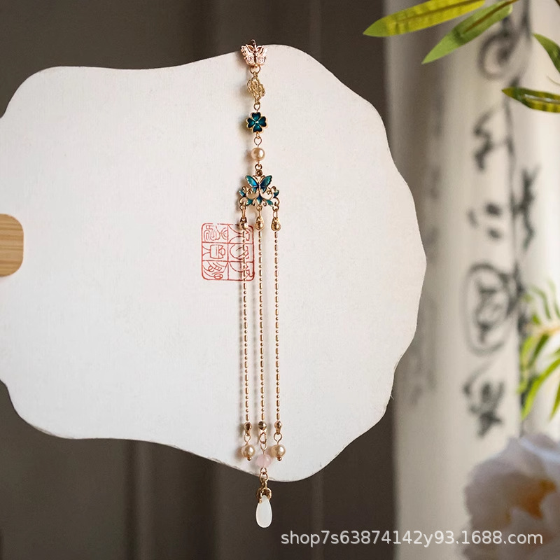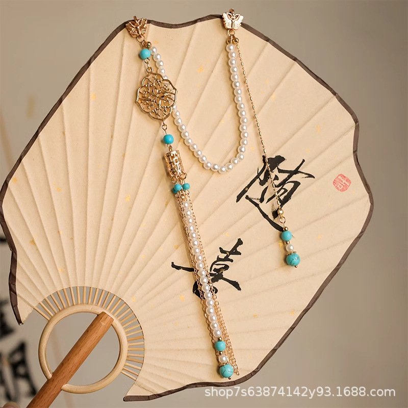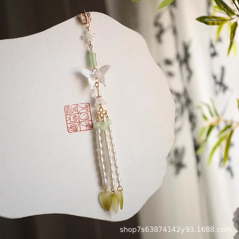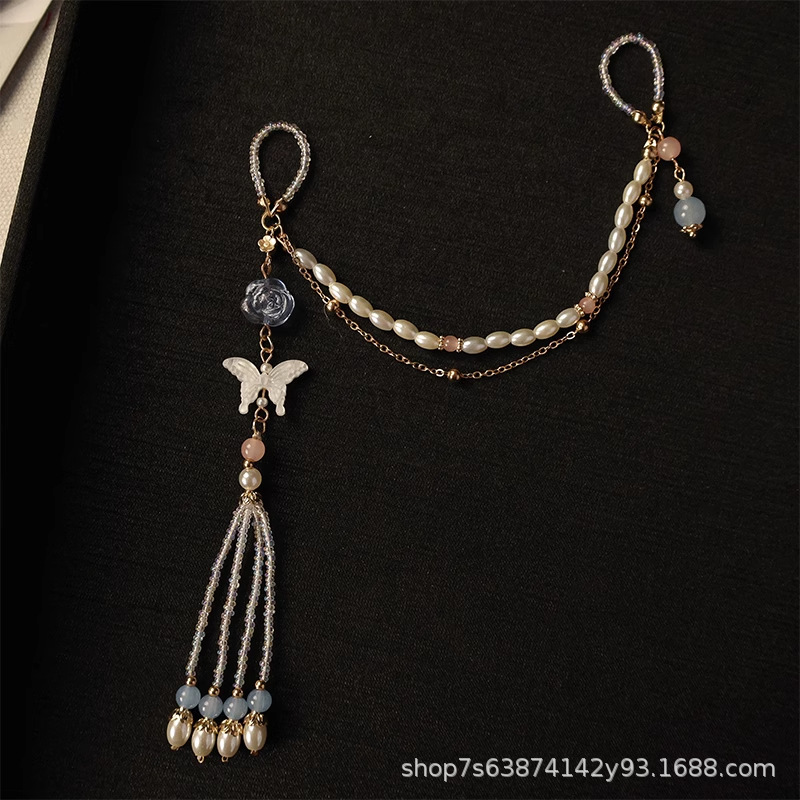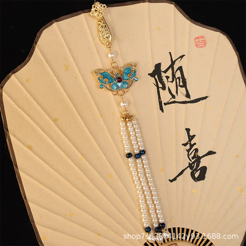 골동품 청삼 플랩 진주 술 나비 펜던트 클래식 한푸 플랩 펜던트 장식 브로치 액세서리