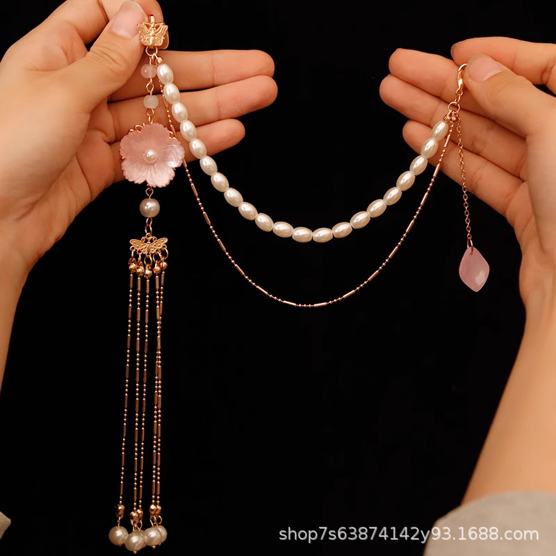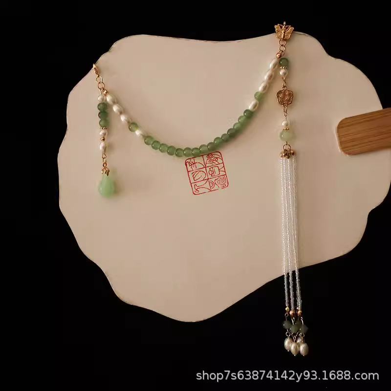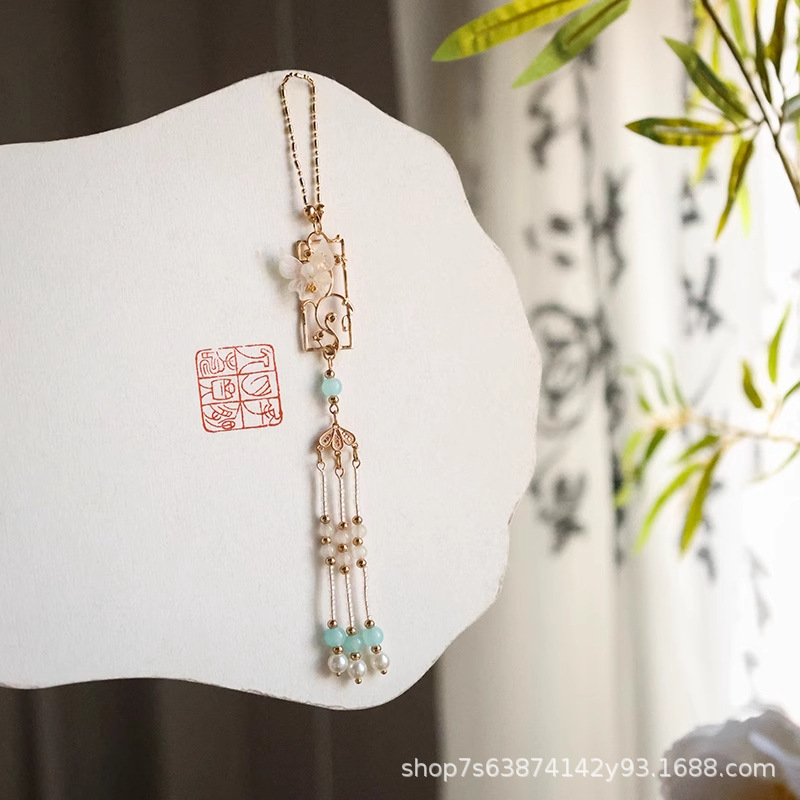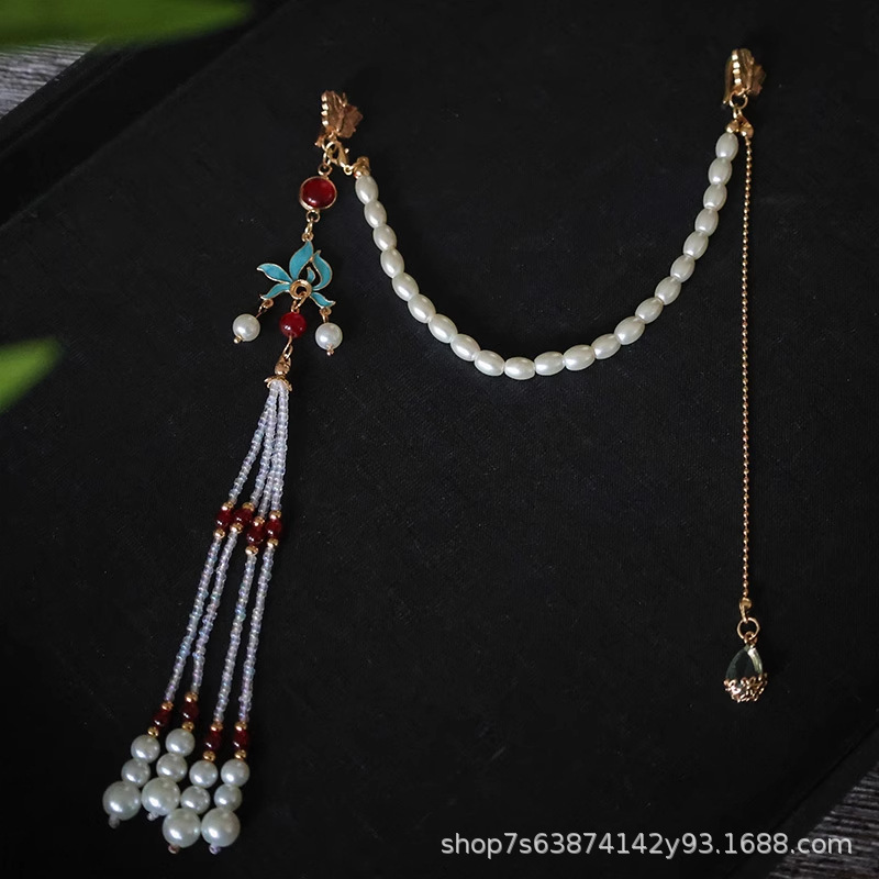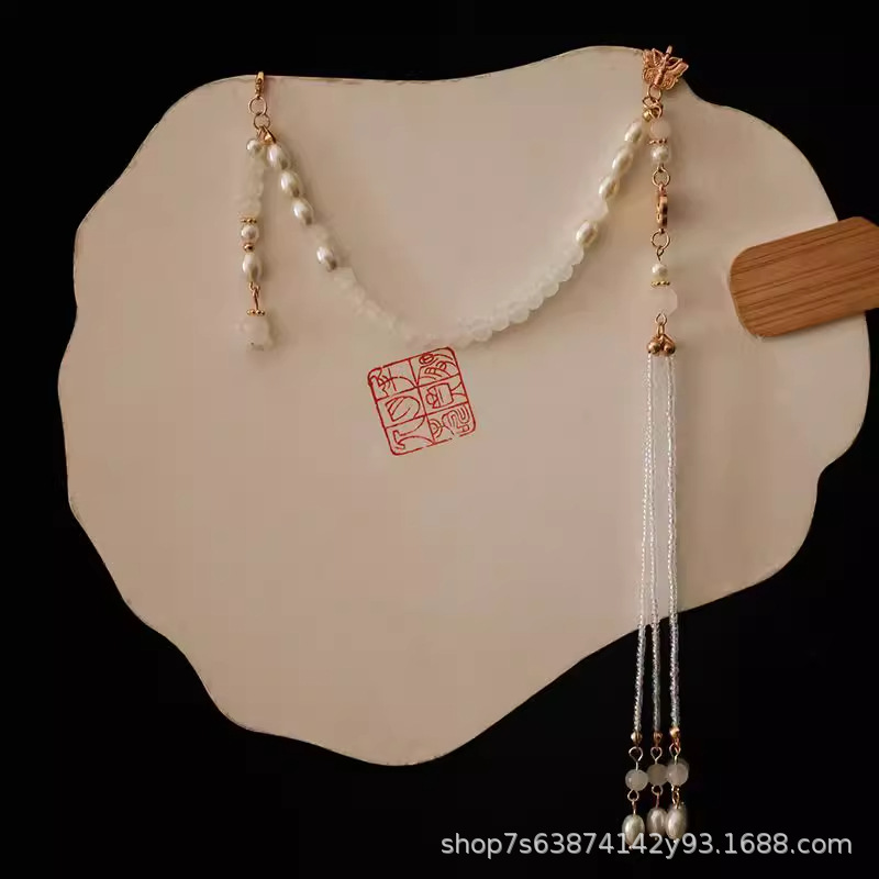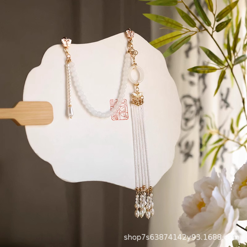골동품 청삼 플랩 진주 술 나비 펜던트 클래식 한푸 플랩 펜던트 장식 브로치 액세서리