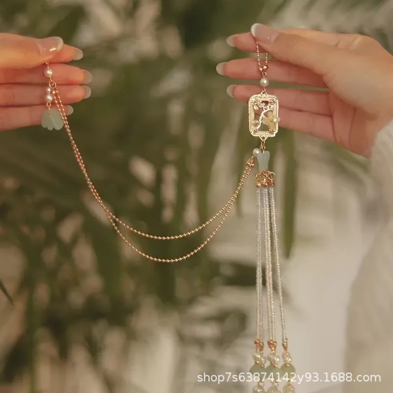 골동품 청삼 플랩 진주 술 나비 펜던트 클래식 한푸 플랩 펜던트 장식 브로치 액세서리스토어 가기