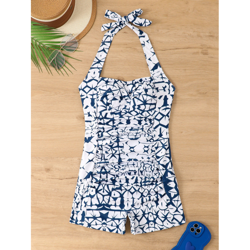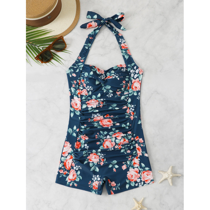 2025 유럽과 미국 대외 무역 새로운 수영복 여성 원피스 복서 패션 배꼽 슬림 아마존 폭발 수영복스토어 가기