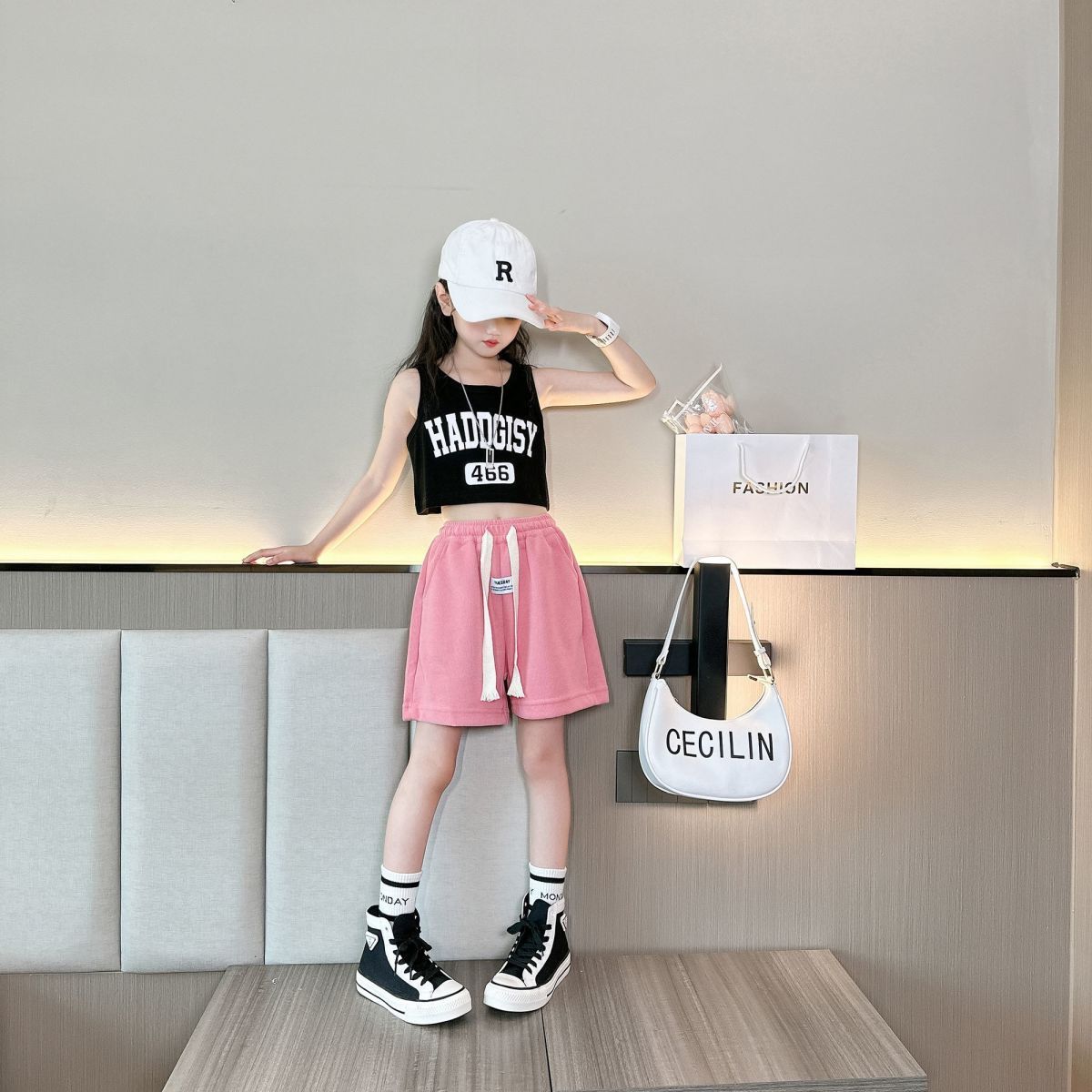 여아 정장, 여름 큰 아동 캐주얼 패션 스포츠 조끼, 아동 패션 인터넷 연예인 루즈 반바지 투피스 세트스토어 가기