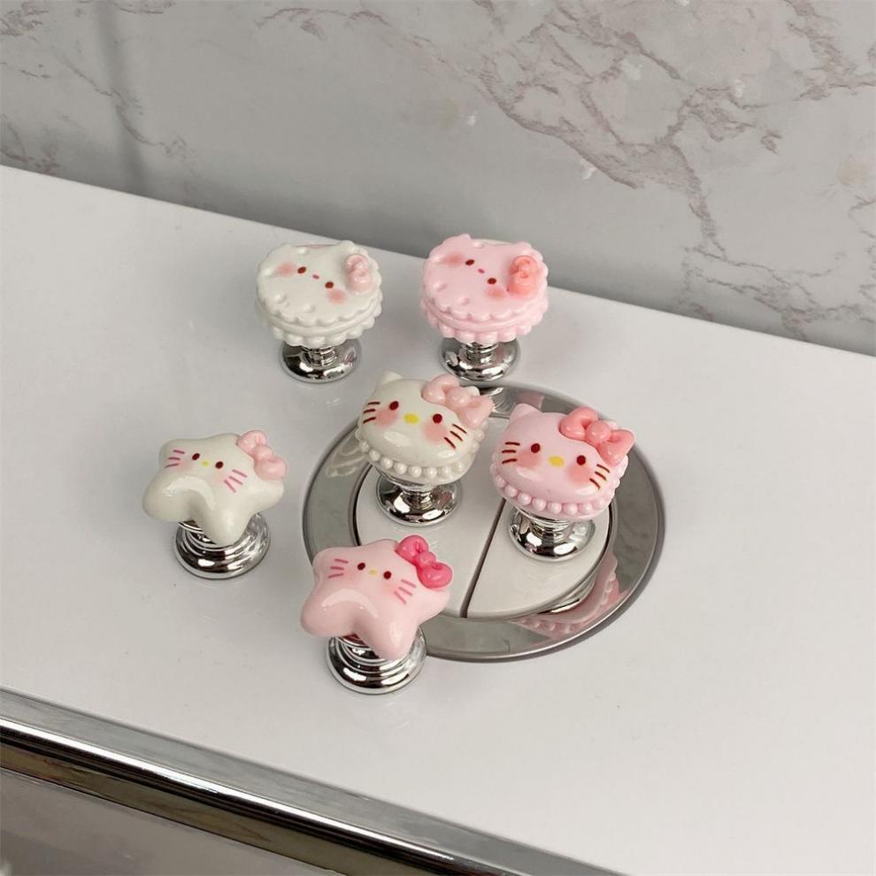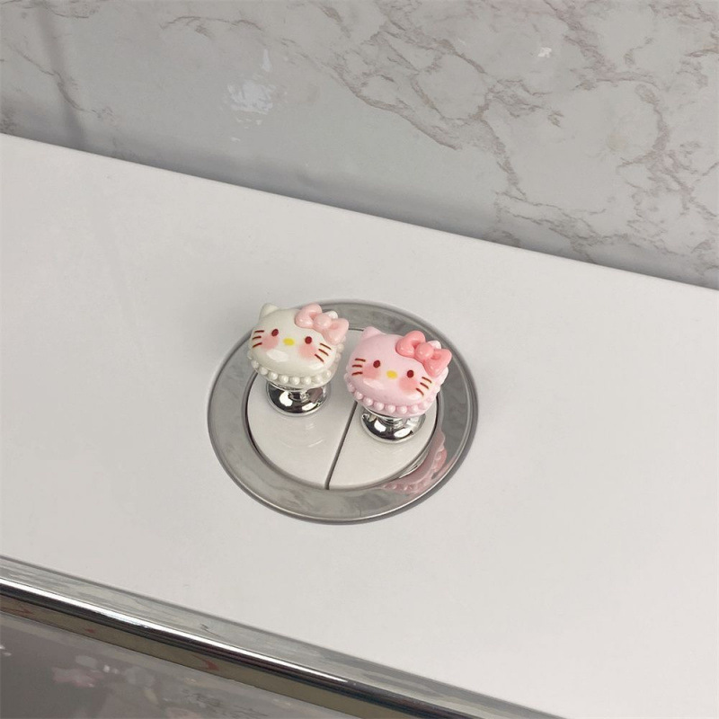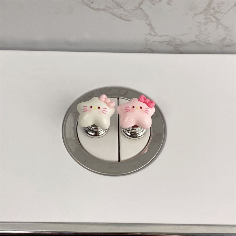 ∝ 귀여운 KT 고양이 변기 프레스 버튼 긴 매니큐어 네일 보조 유물 버튼 방수 범용 물통 소형