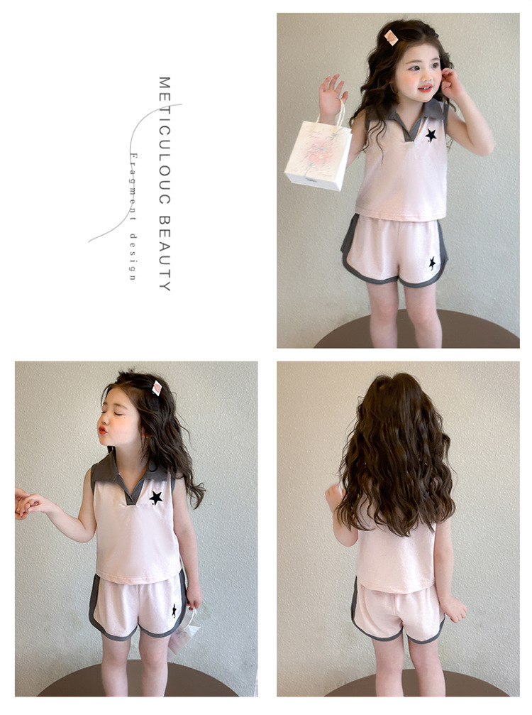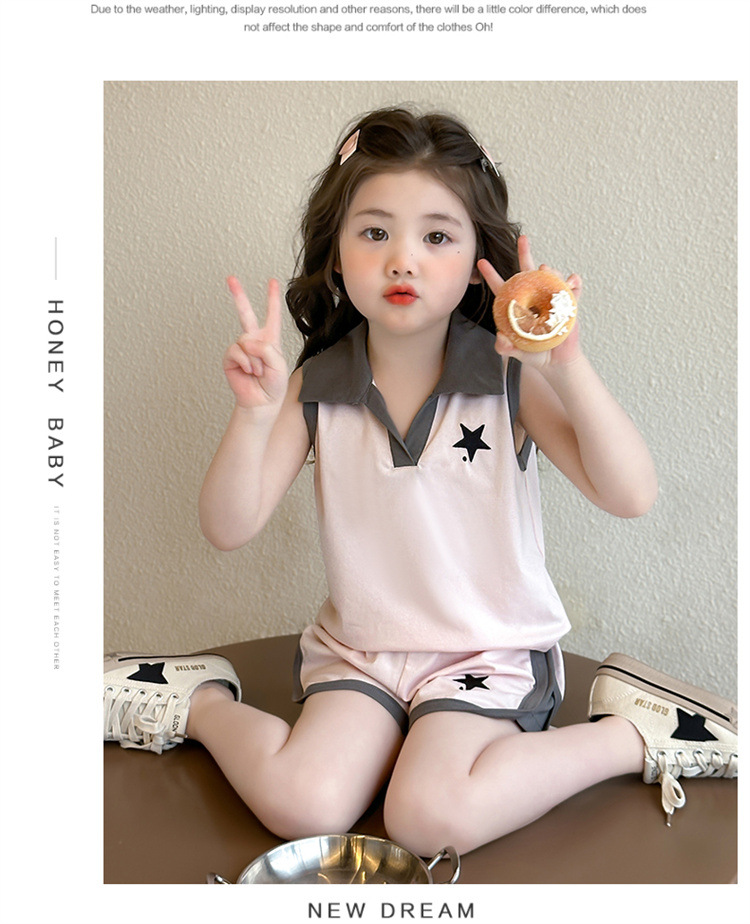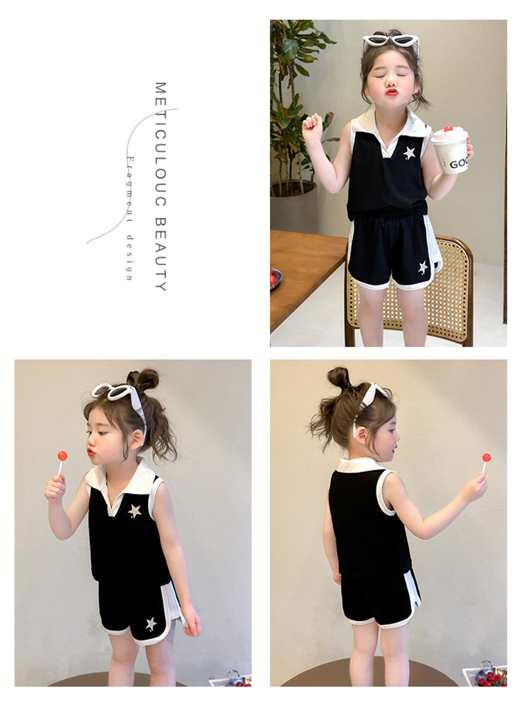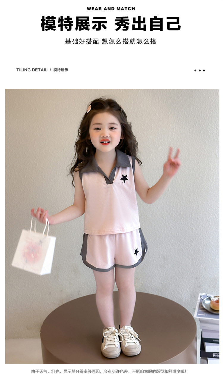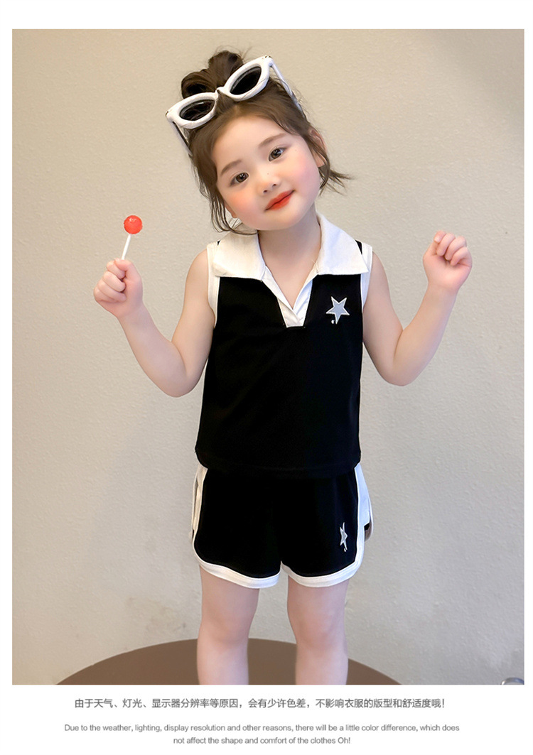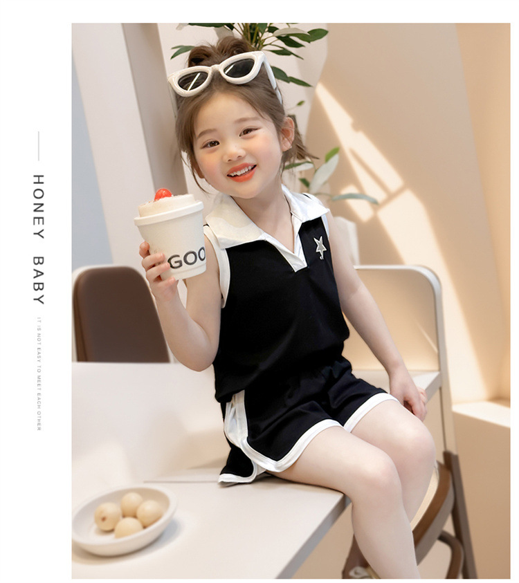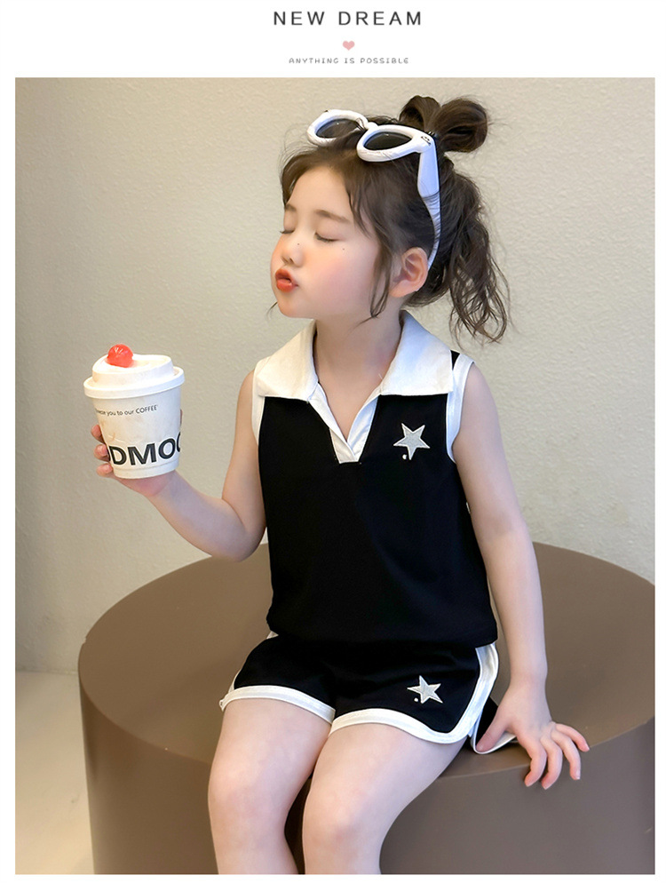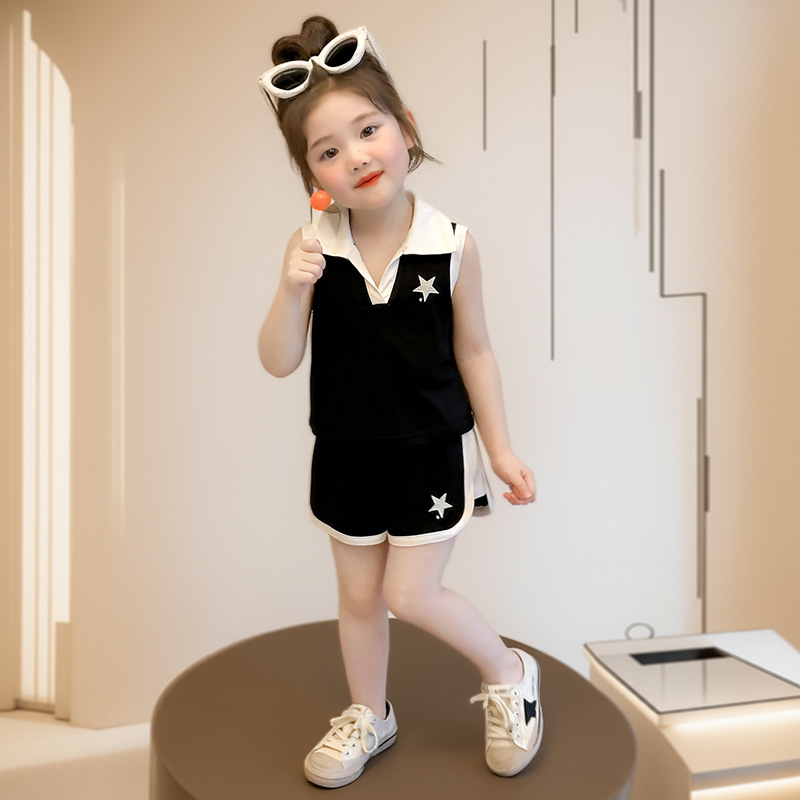 소녀의 스타 컬러 세트 2025 여름 새로운 패션 소녀 세련된 투피스 세트 중소 어린이 여름 원피스스토어 가기