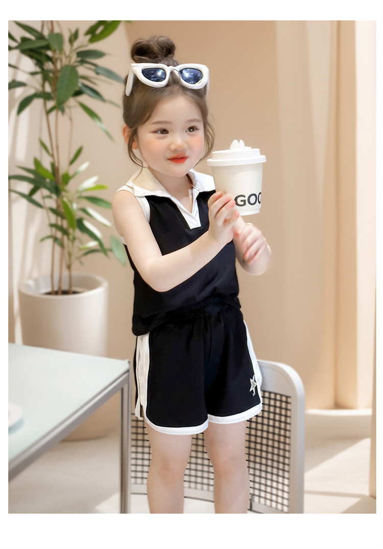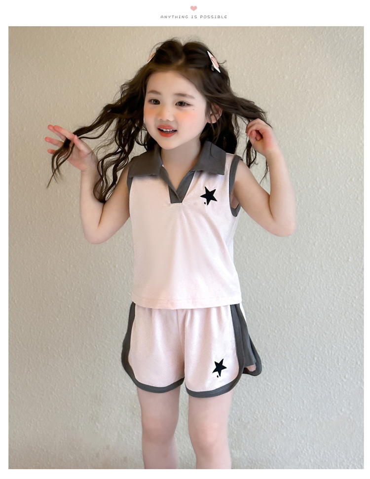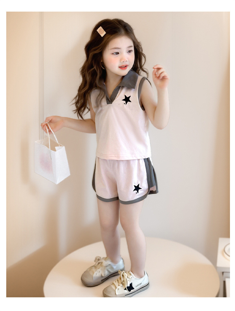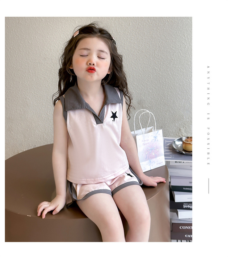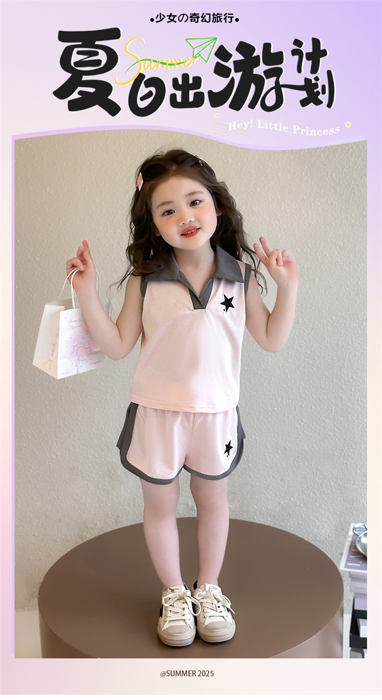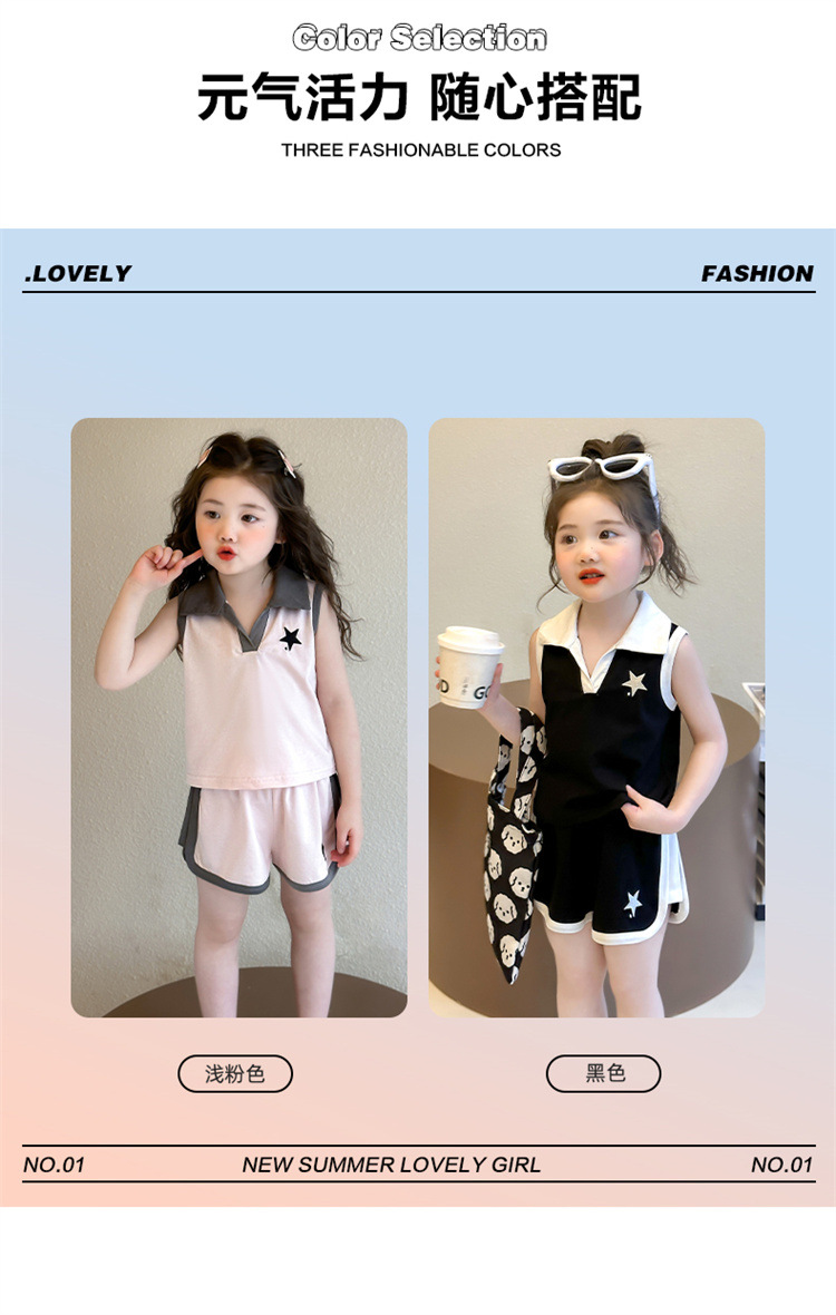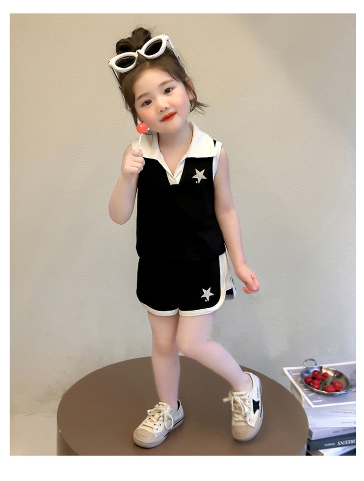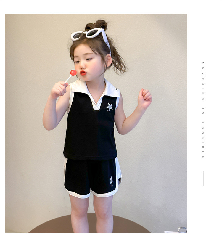 소녀의 스타 컬러 세트 2025 여름 새로운 패션 소녀 세련된 투피스 세트 중소 어린이 여름 원피스스토어 가기