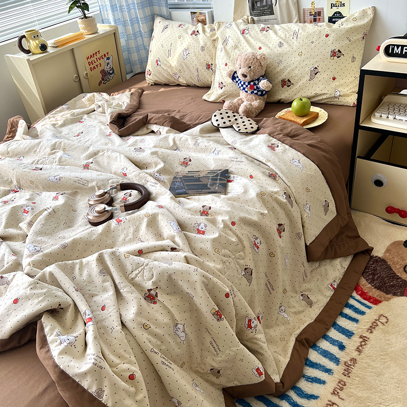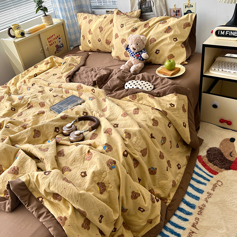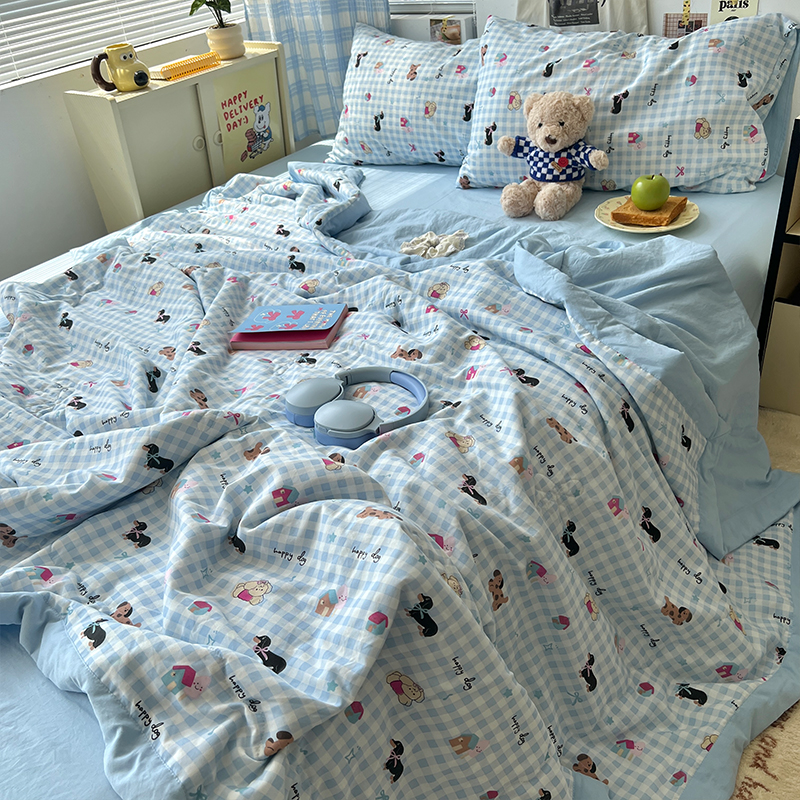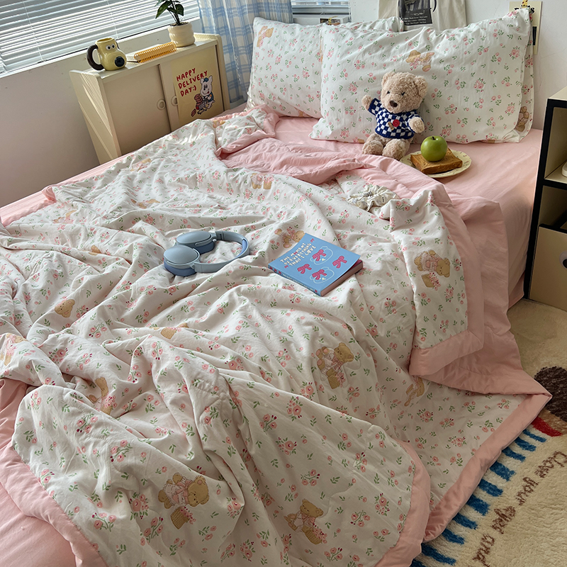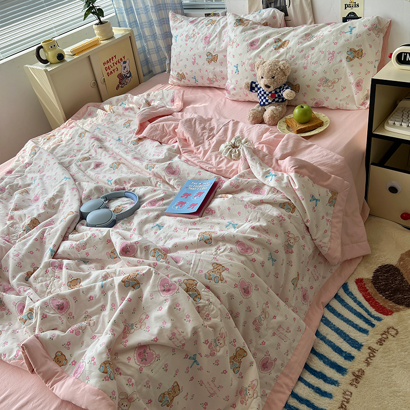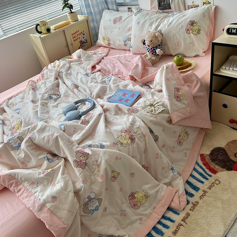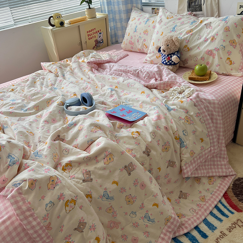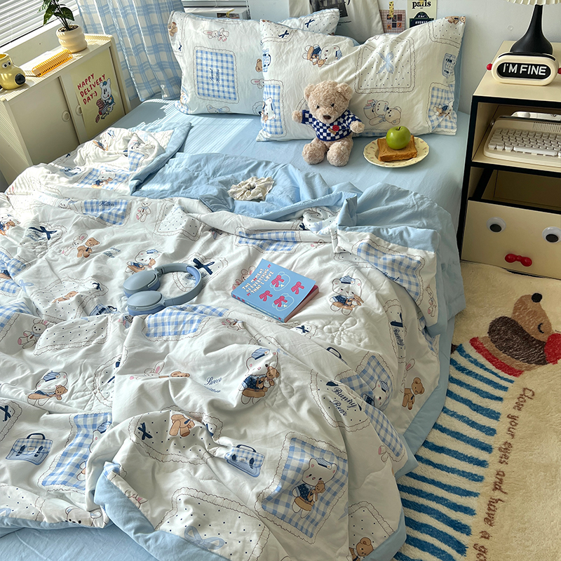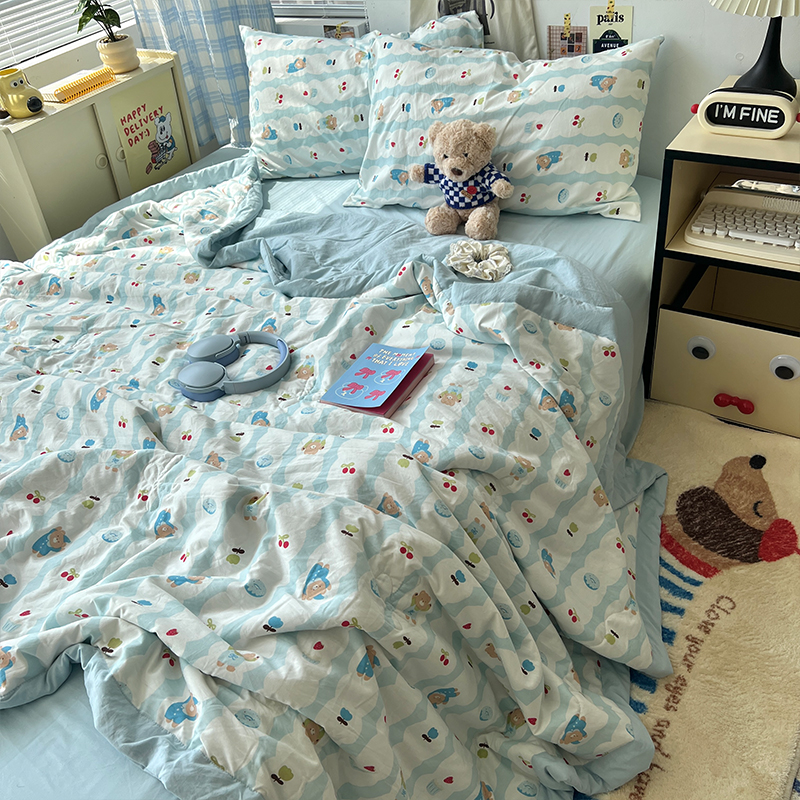 작은 신선한 씻은 면 여름 시원한 이불 단일 기숙사 부드러운 얇은 이불 여름 피부 친화적 인 에어컨 퀼트 3 피스 퀼트 코어스토어 가기