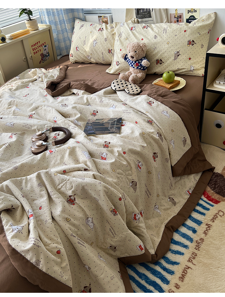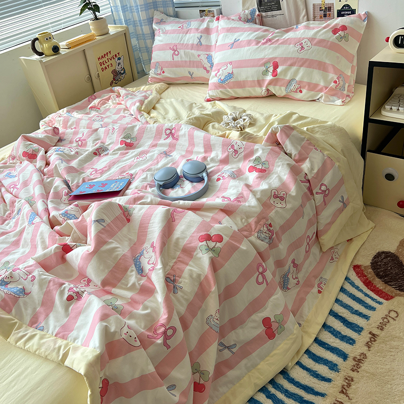 작은 신선한 씻은 면 여름 시원한 이불 단일 기숙사 부드러운 얇은 이불 여름 피부 친화적 인 에어컨 퀼트 3 피스 퀼트 코어