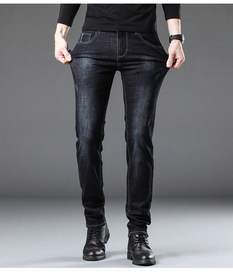 슬림 핏 스키니 청바지 남자 2025 새로운 캐주얼 심플 올 매치 바지 여름 하이 엔드 남자 트렌디 바지