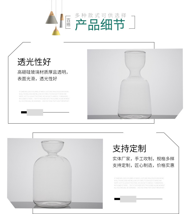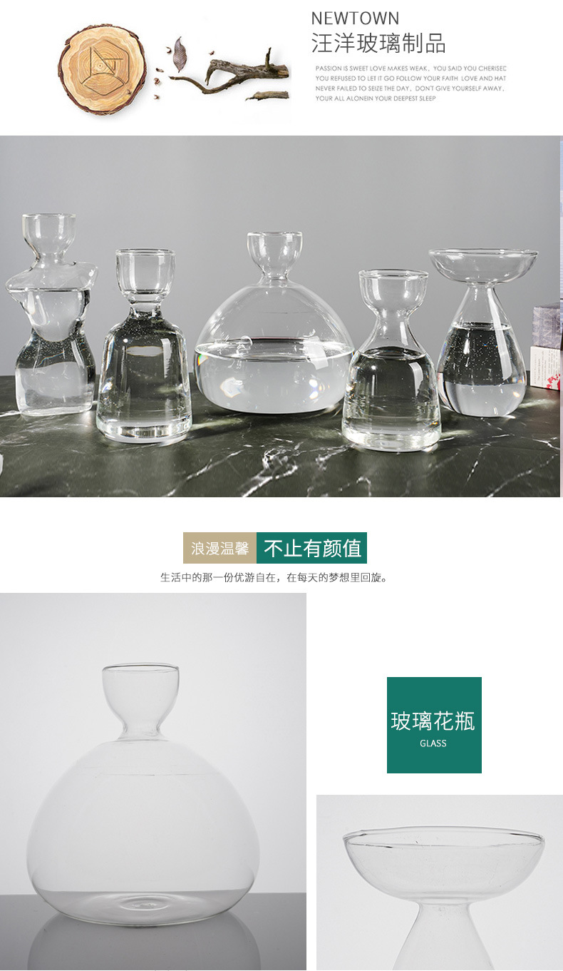 유리 꽃병 홈 거실 장식 수경 꽃과 식물 꽃꽂이 데스크탑 장식품 아보카도 꽃병