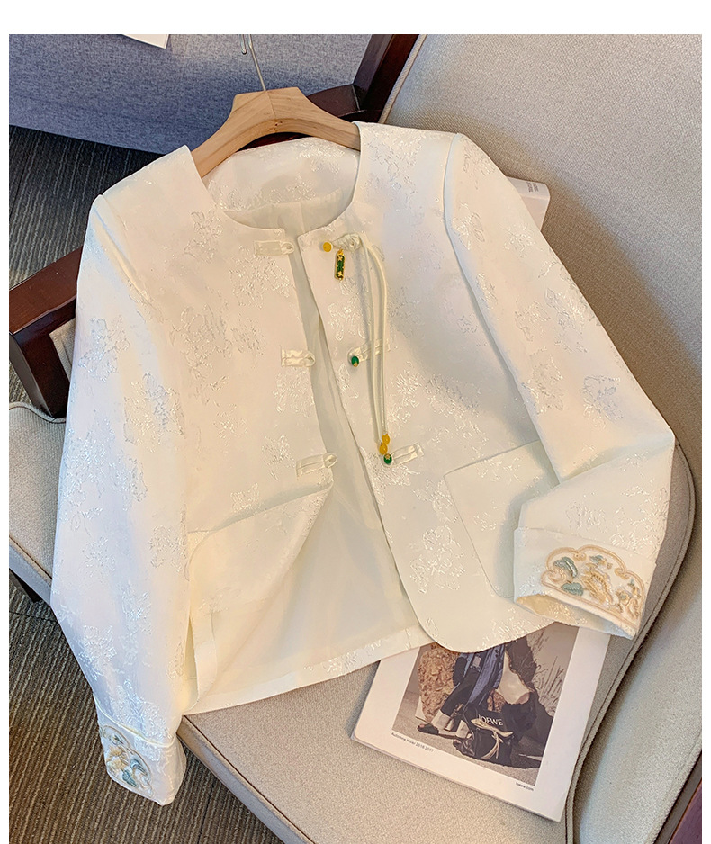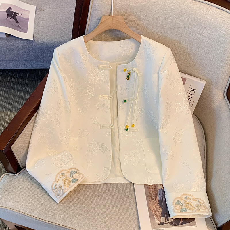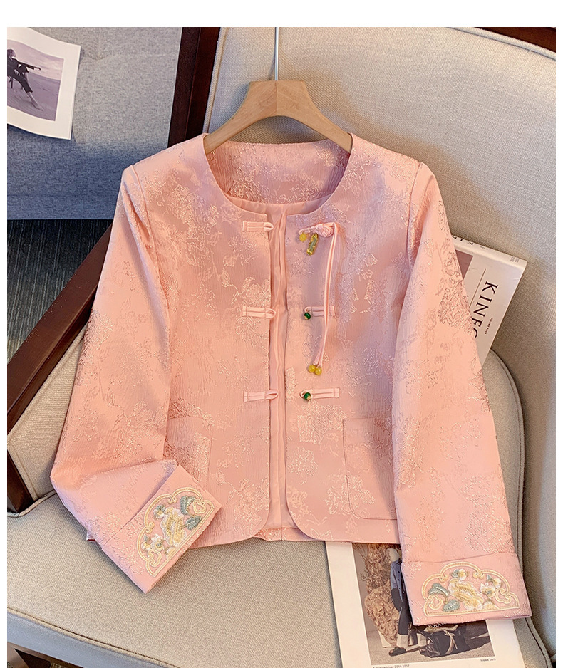 새로운 중국 스타일 국가 스타일 코트 봄 여성의 2025 새로운 스타일 작은 스타일 빛 럭셔리 하이 엔드 슈퍼 파이어 자수 탑스토어 가기