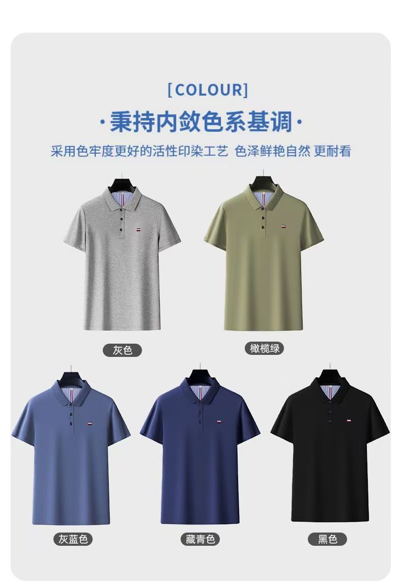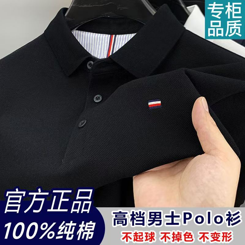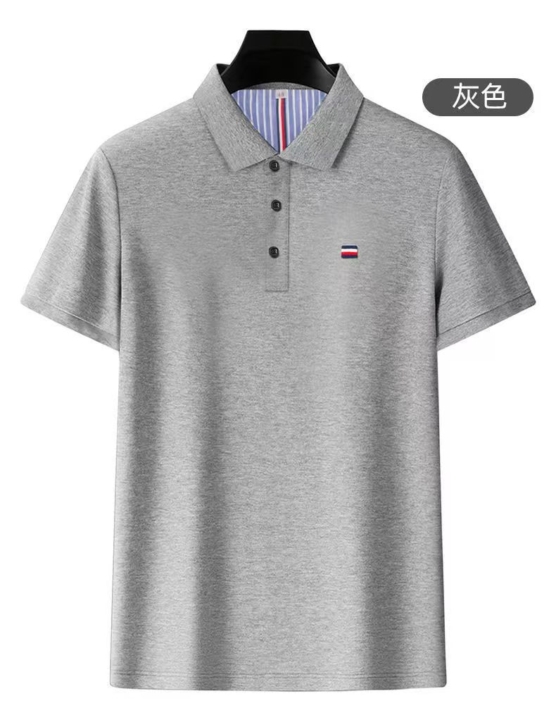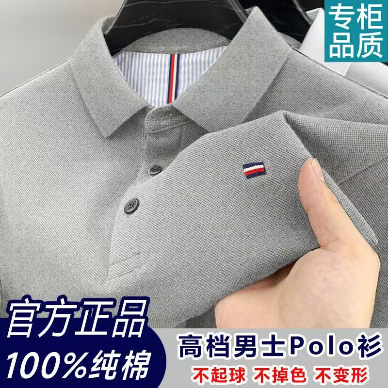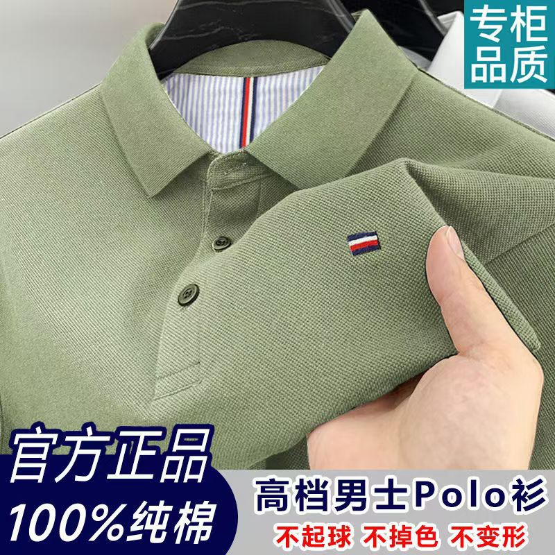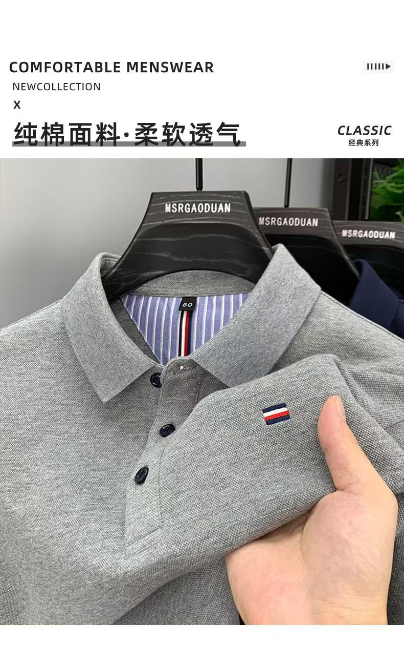 [순면 100%] 신상 여름 남성 반팔 티셔츠 라펠 폴로 셔츠 자수 솔리드 컬러 남성 반팔 탑