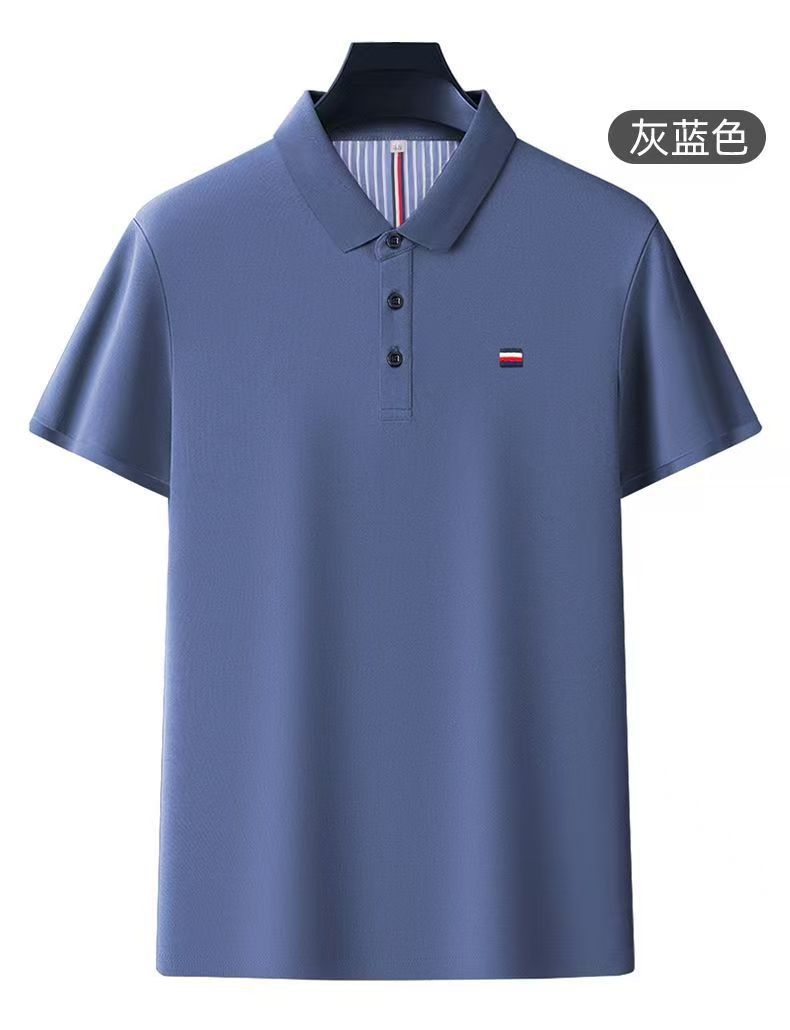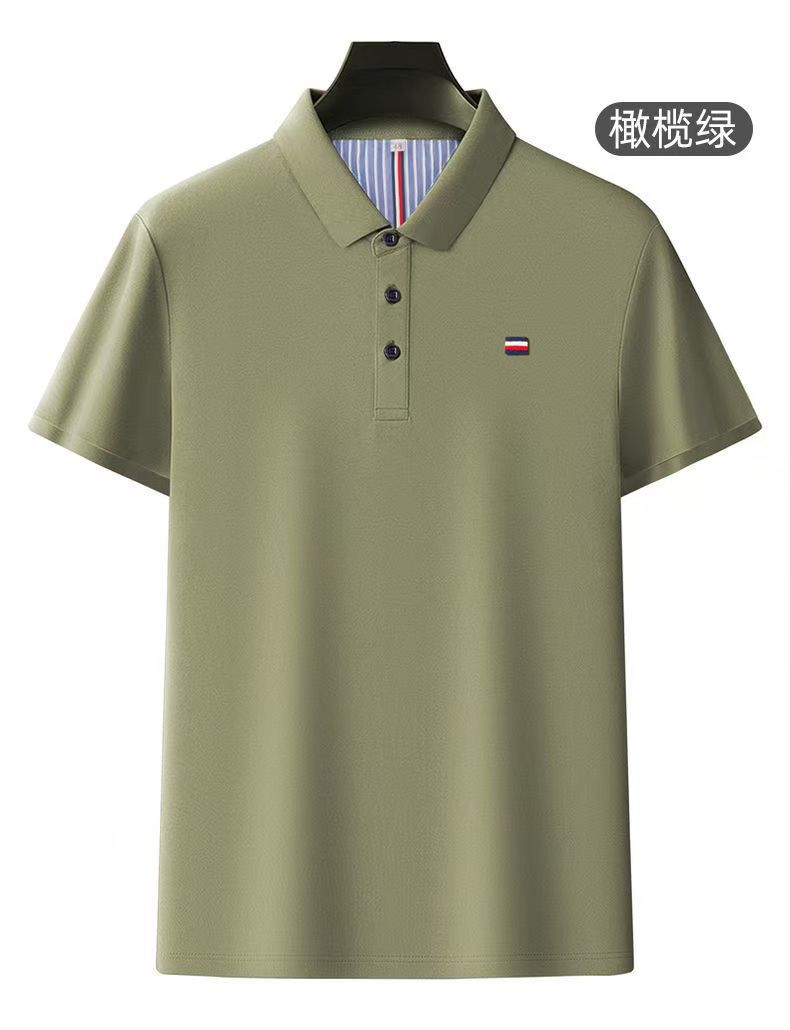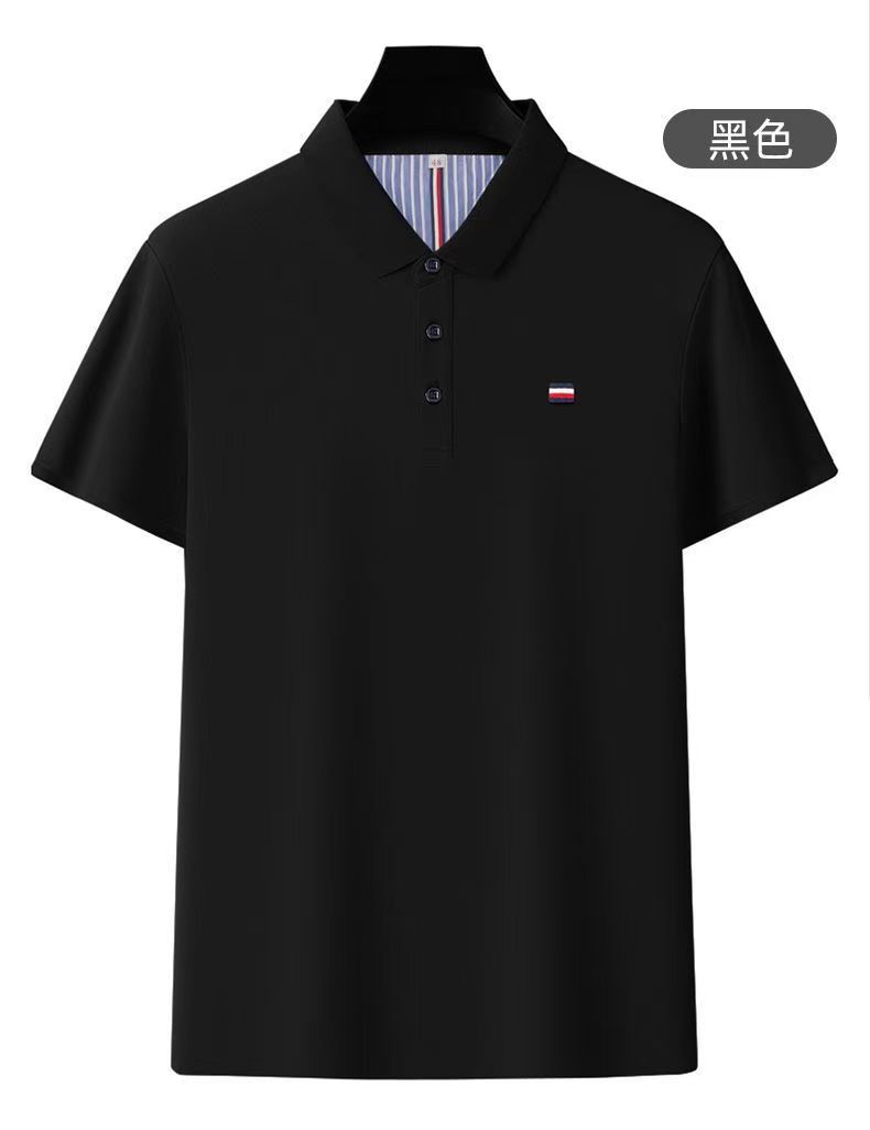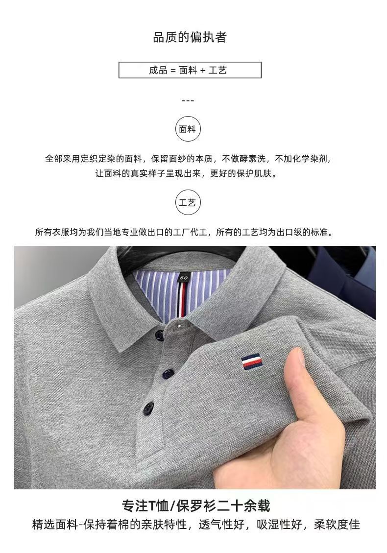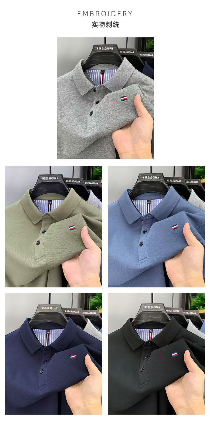 [순면 100%] 신상 여름 남성 반팔 티셔츠 라펠 폴로 셔츠 자수 솔리드 컬러 남성 반팔 탑