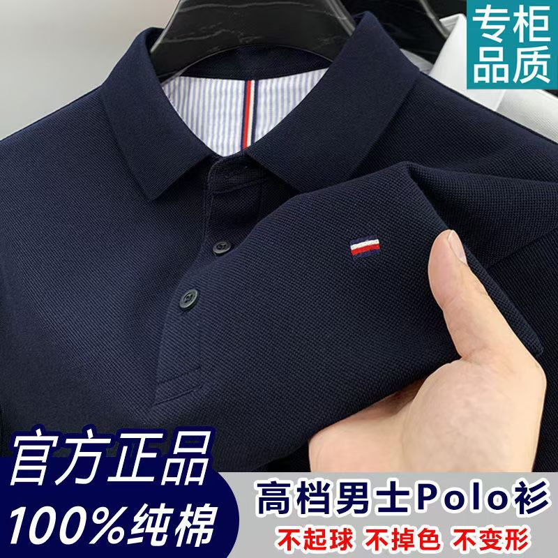 [순면 100%] 신상 여름 남성 반팔 티셔츠 라펠 폴로 셔츠 자수 솔리드 컬러 남성 반팔 탑스토어 가기