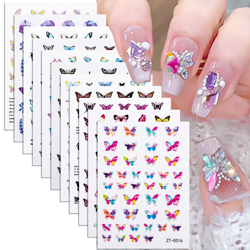 Zhengxiang 인터넷 연예인 작은 신선한 나비 네일 아트 스티커 DIY 네일 스티커 크로스 보더 아마존 핫 판매 네일 아트 데칼 인