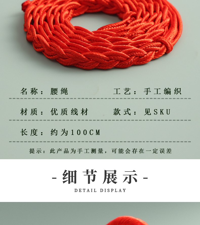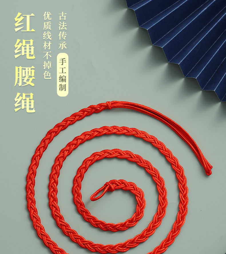 동물의 해를 위한 민족 손으로 짠 붉은 밧줄 허리 체인, 행운을 빌어주는 붉은 벨트, 중국 스타일의 점진적으로 높아지는 밧줄 허리 체인