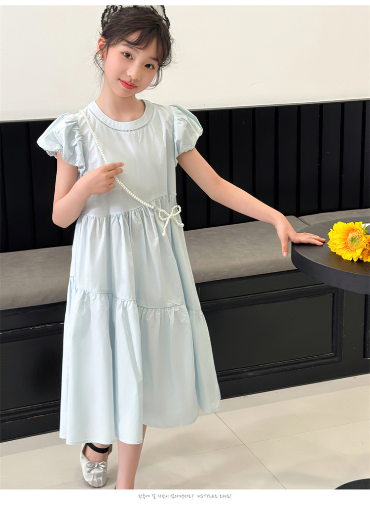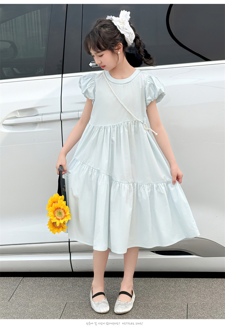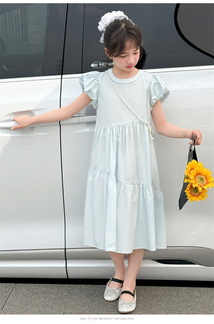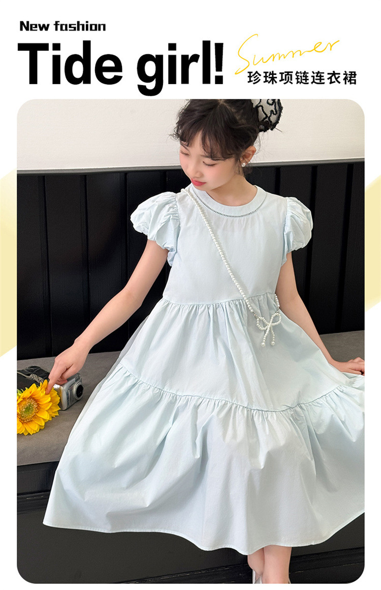 소녀의 여름 달콤한 세련된 퍼프 슬리브 원피스 2025 새로운 스타일 소녀의 세련된 코튼 공주 트렌디 스커트스토어 가기