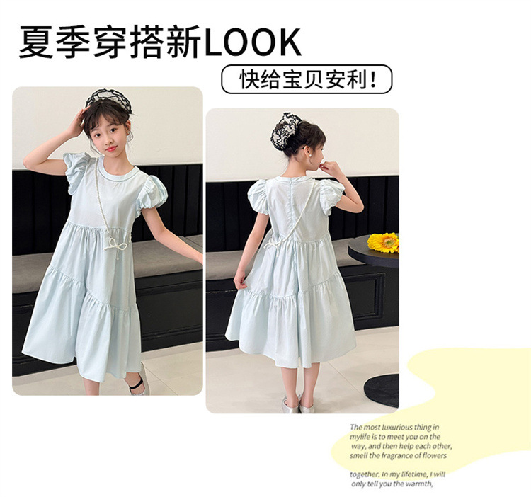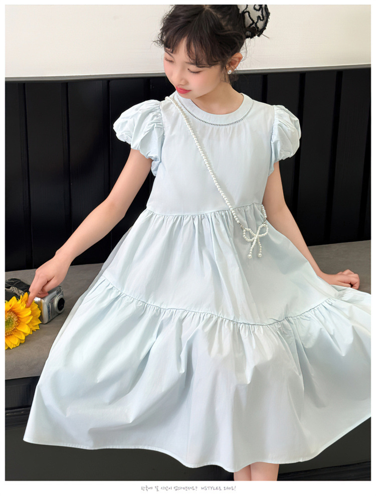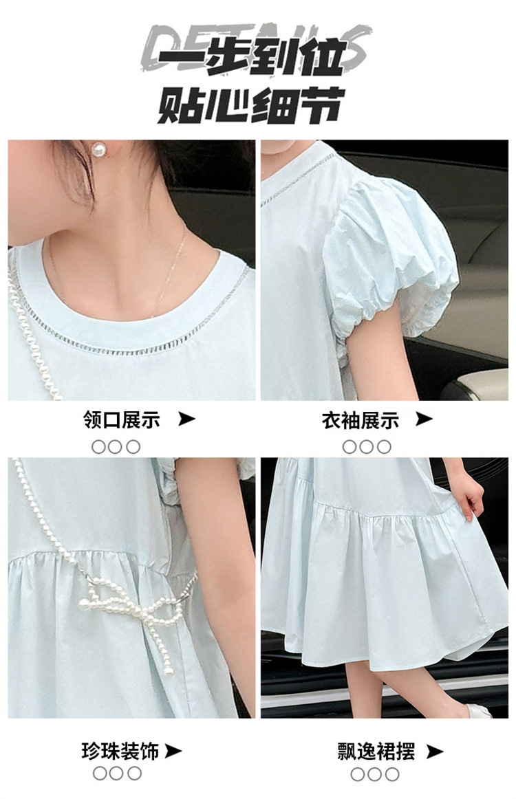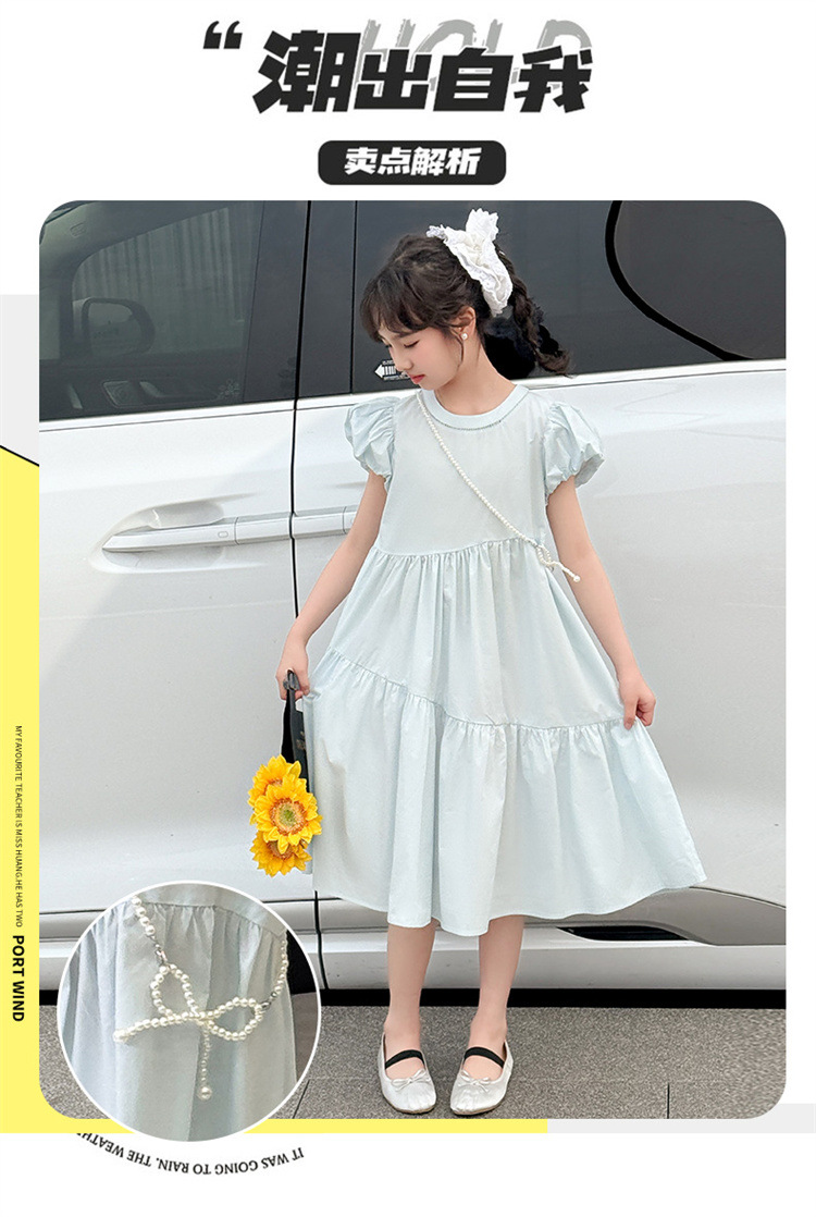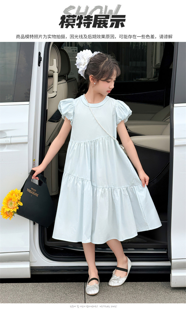 소녀의 여름 달콤한 세련된 퍼프 슬리브 원피스 2025 새로운 스타일 소녀의 세련된 코튼 공주 트렌디 스커트스토어 가기