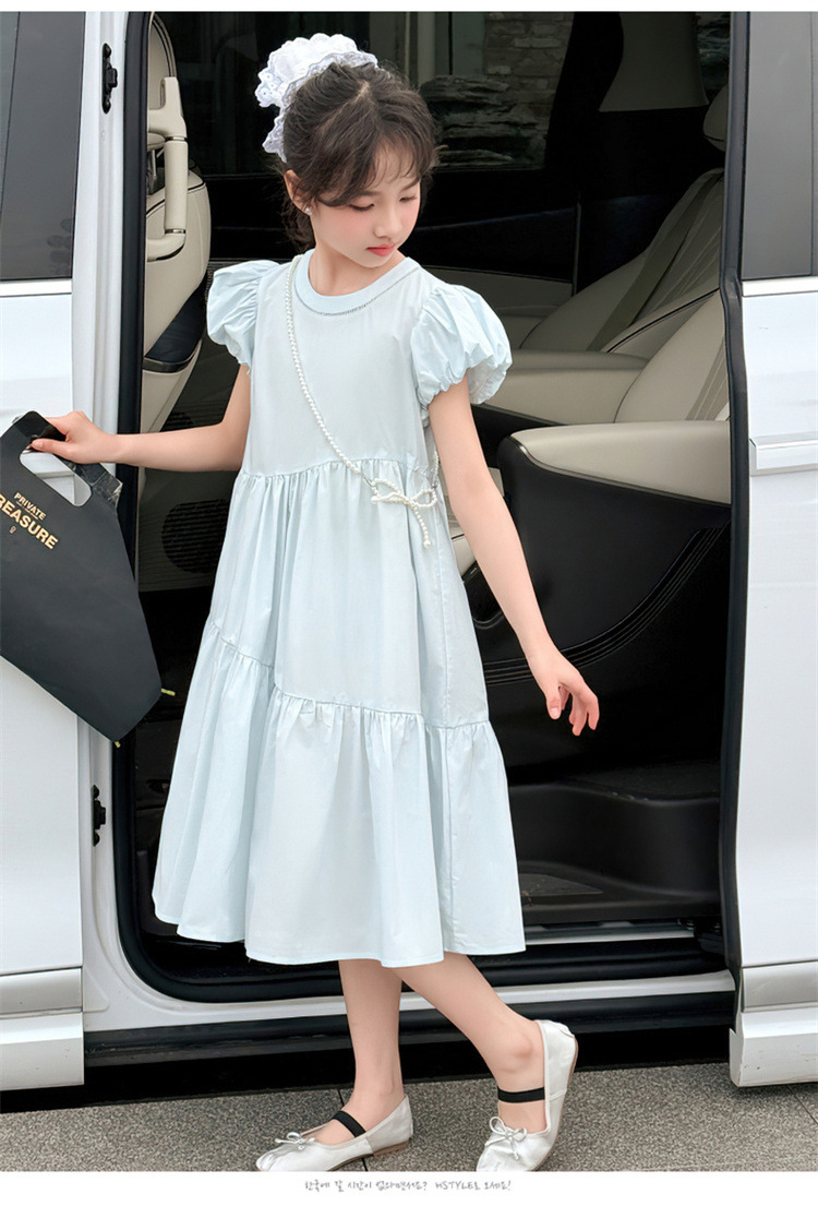 소녀의 여름 달콤한 세련된 퍼프 슬리브 원피스 2025 새로운 스타일 소녀의 세련된 코튼 공주 트렌디 스커트