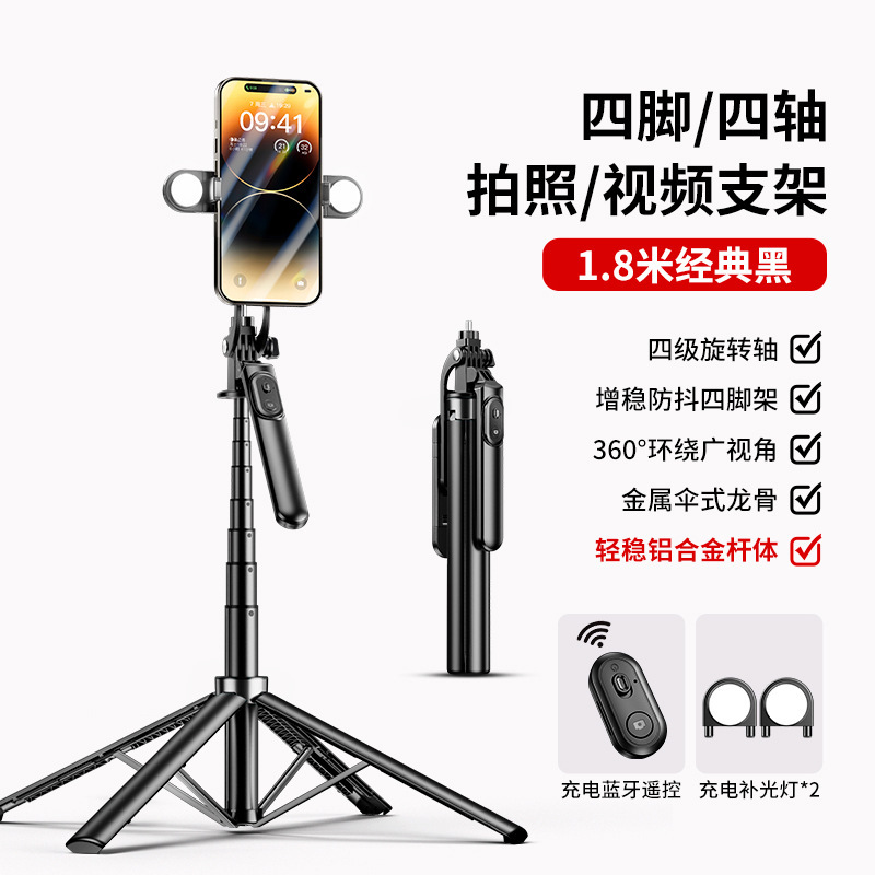 • 블랙 1.8m [굵은 사각대★알루미늄 합금★블루투스 원격 제어★더블 뷰티 램프】
