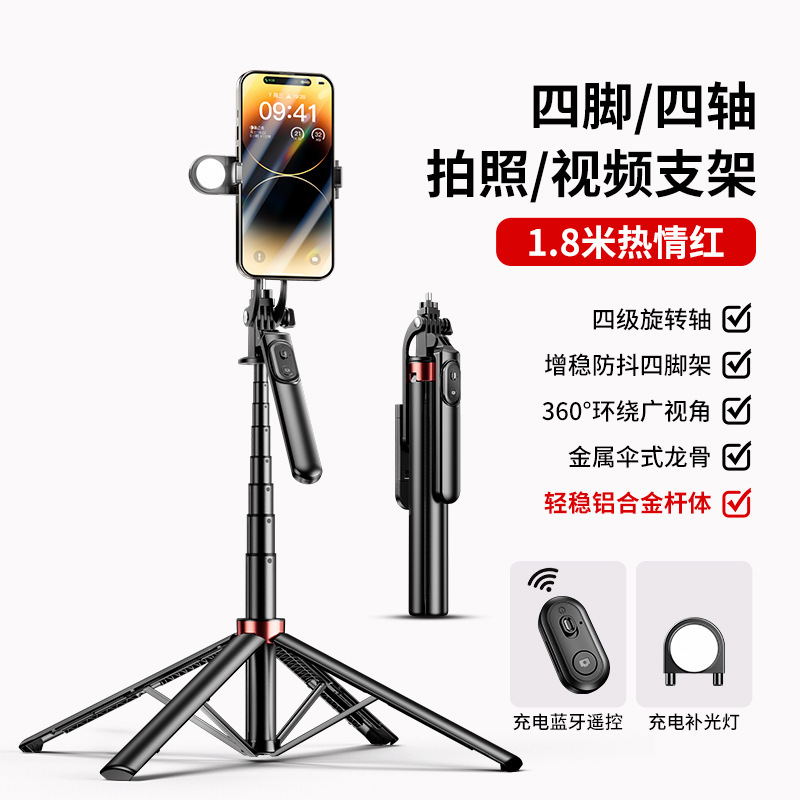 • 레드 1.8m [굵은 사각대★알루미늄 합금★블루투스 원격 제어★더블 뷰티 램프】