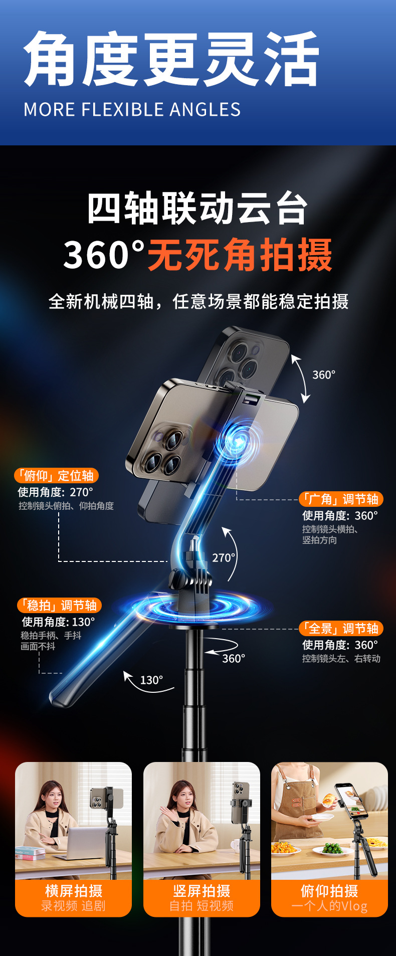 Yuntai 안티 쉐이크 휴대 전화 셀카 스틱 블루투스 원격 제어 회전 카메라 스틱 다기능 삼각대 휴대용 라이브 방송 스탠드