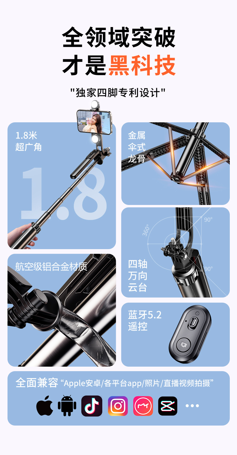 • 블랙 1.8m [굵은 사각대★알루미늄 합금★블루투스 리모콘]