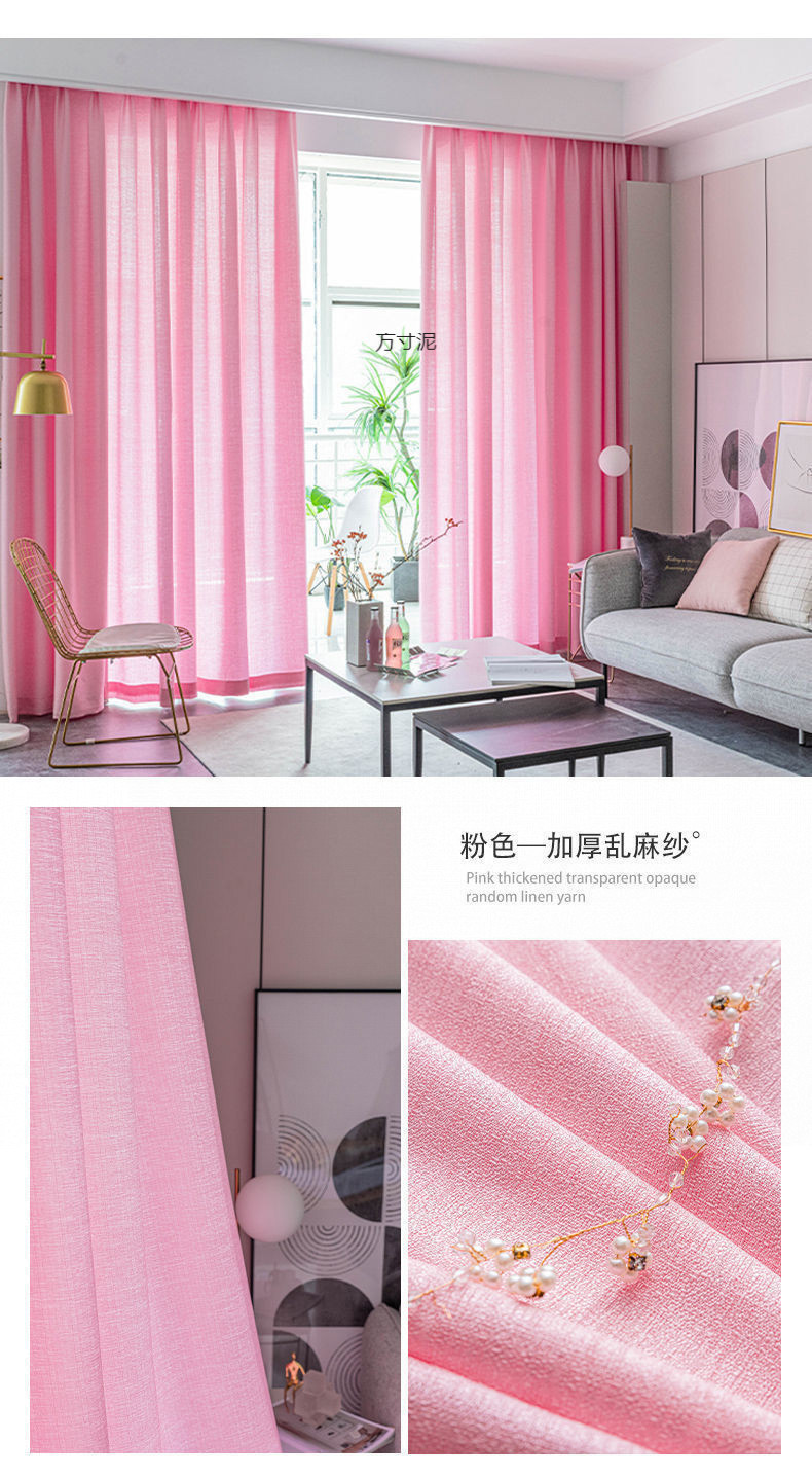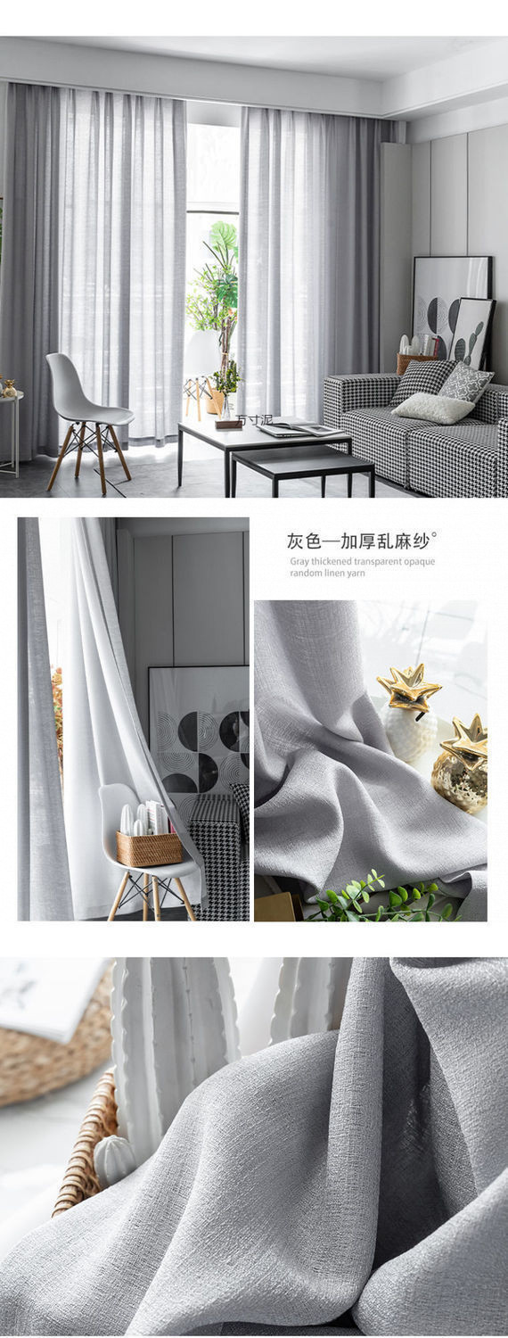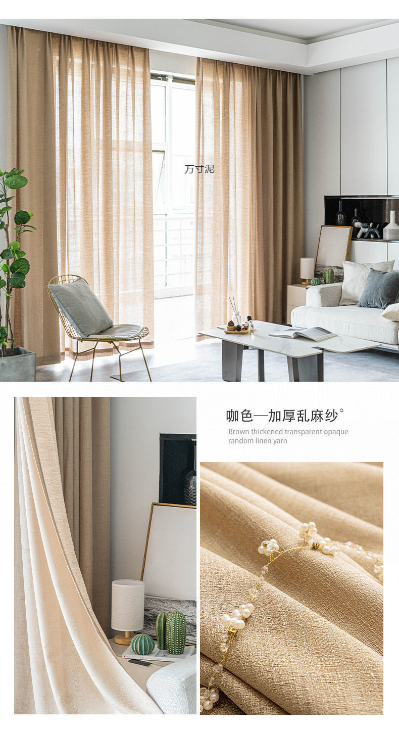 투과성 커튼 프렌치 윈도우 스크린 옐로우 코튼 린넨 커튼 거실 스타일 침실