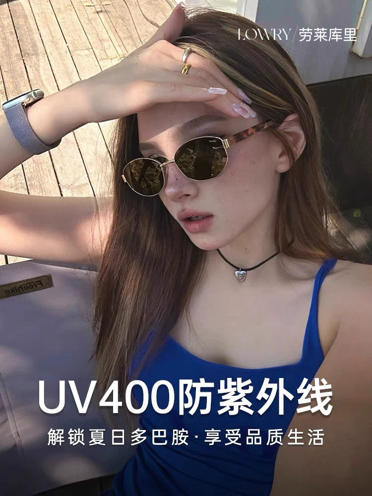 핫세일 신상 유럽풍 레트로 올드머니 스타일 타원형 프레임 고급 선글라스 여행용 자외선 차단 선글라스스토어 가기