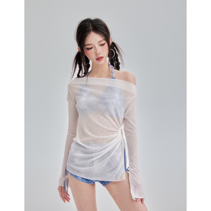 새로운 여성 스플릿 비키니 3 피스 슬림 섹시한 긴팔 블라우스 해변 온천 휴가 수영복 도매