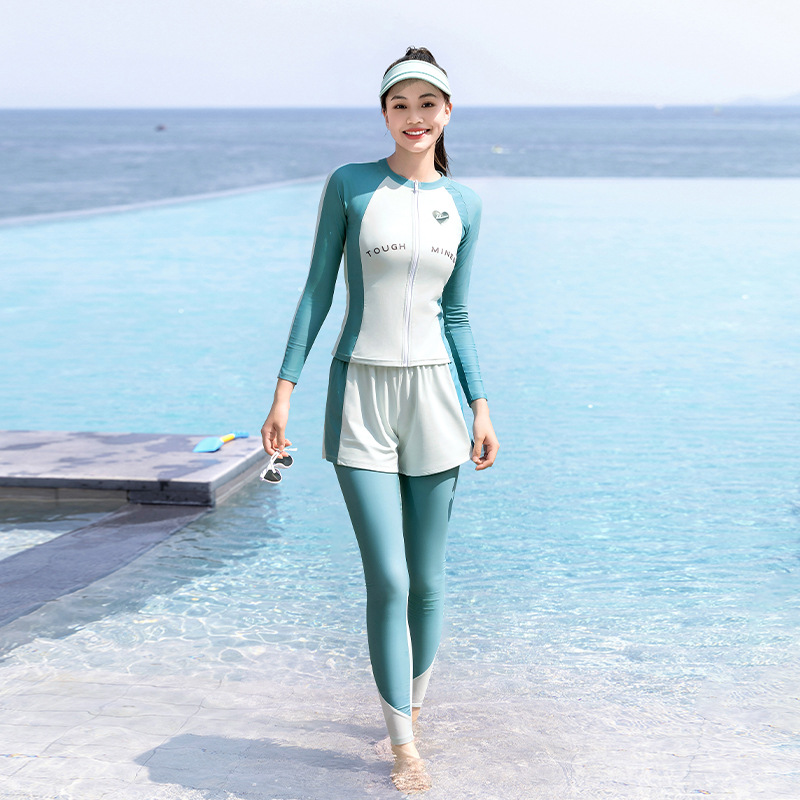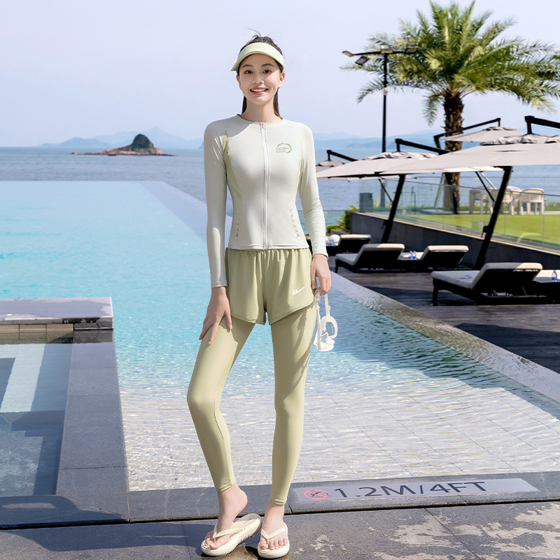 여성용 풀백 수영복, 4피스 세트, 긴팔 바지, 2025 신상 온천 서핑복, 스포츠 수영복 도매스토어 가기