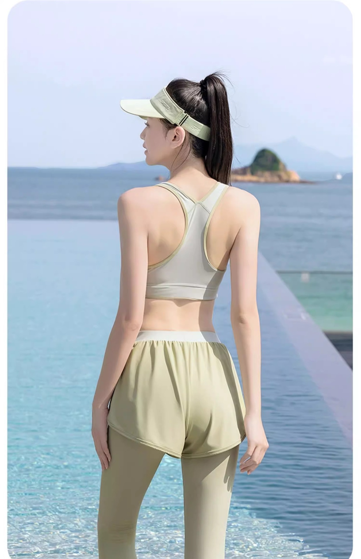 여성용 풀백 수영복, 4피스 세트, 긴팔 바지, 2025 신상 온천 서핑복, 스포츠 수영복 도매