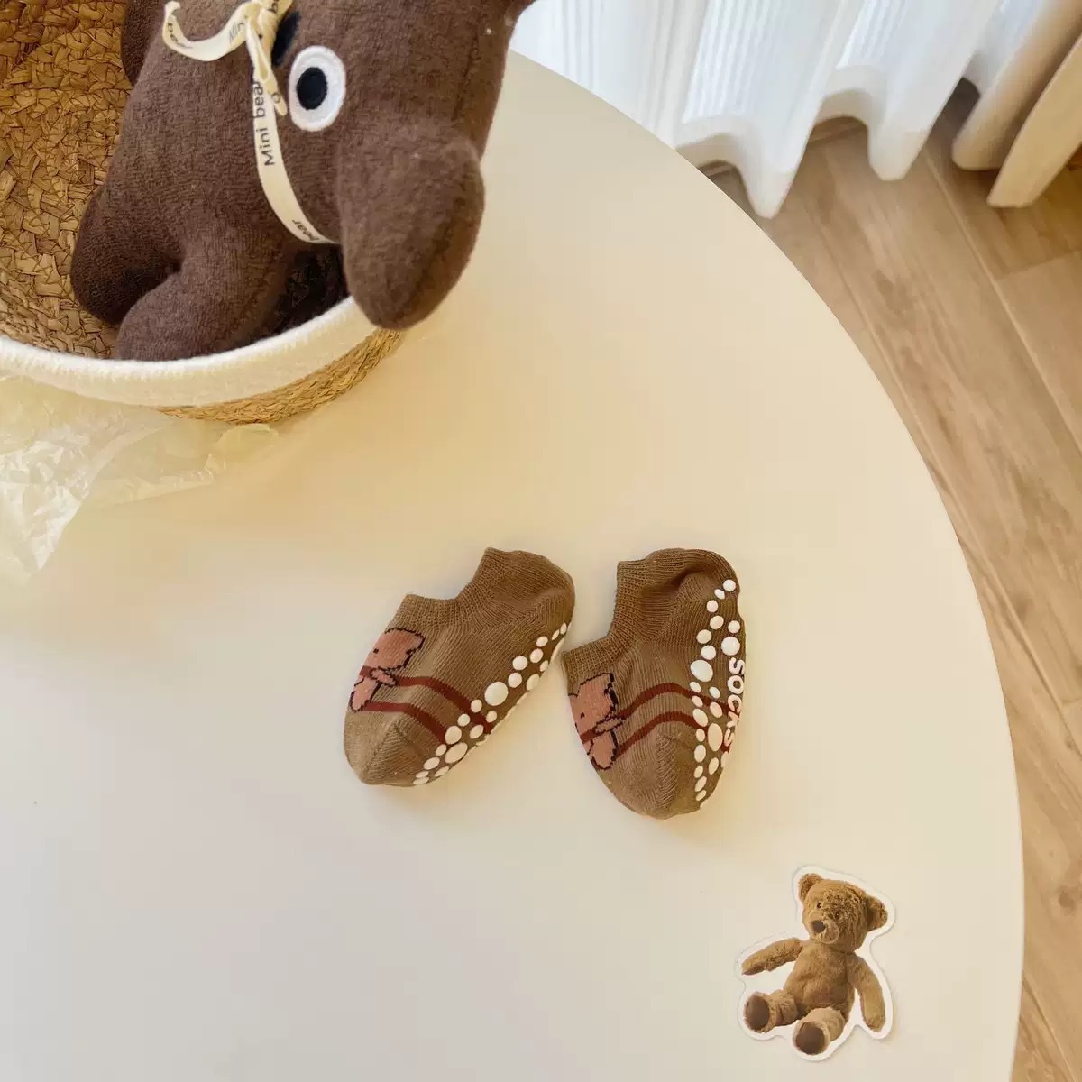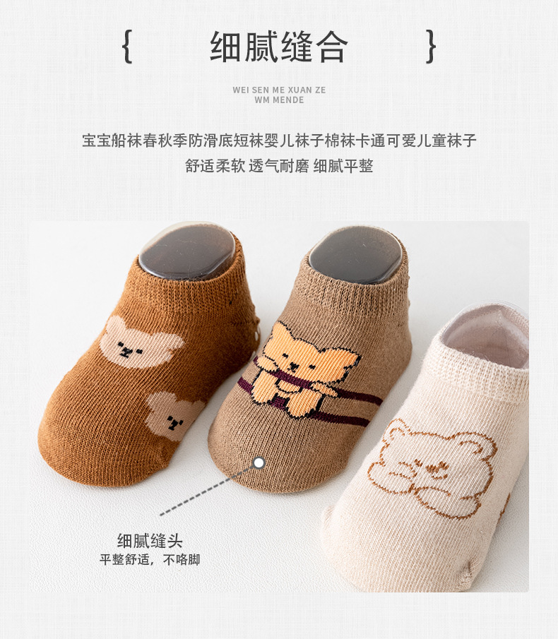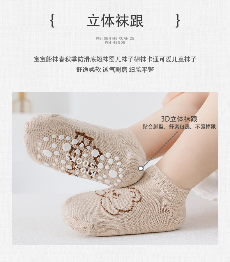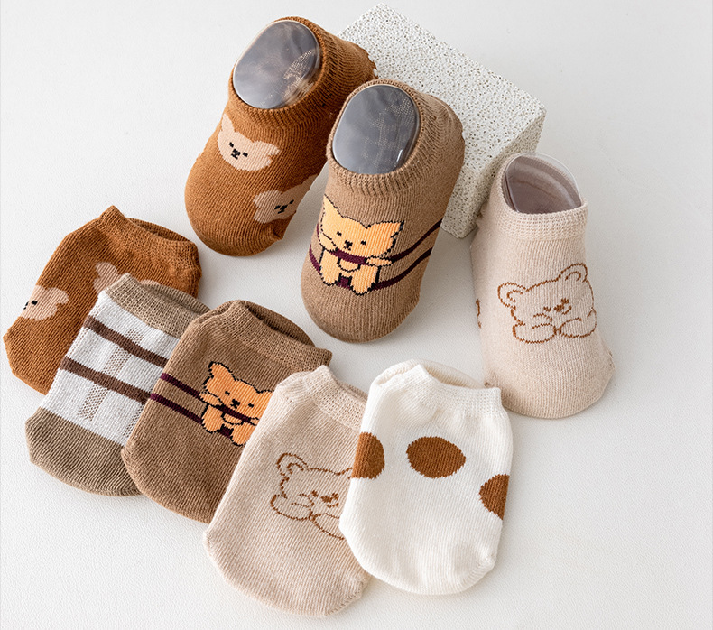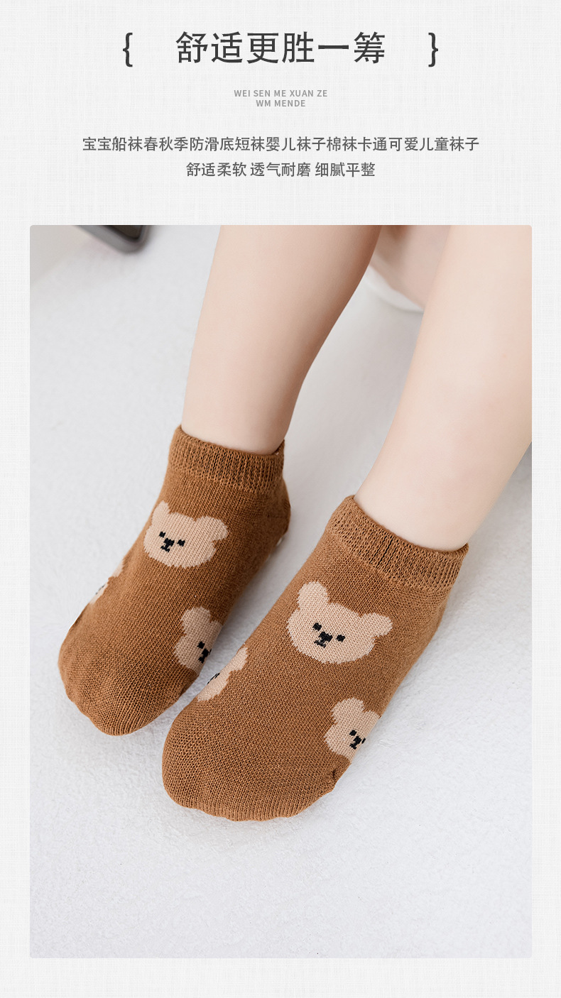 봄, 가을, 겨울 신상품 만화 곰돌이 미끄럼 방지 양말, 어린이용 얕은 입구 편안하고 통기성 좋은 짧은 양말, 아기 바닥 양말 공장스토어 가기
