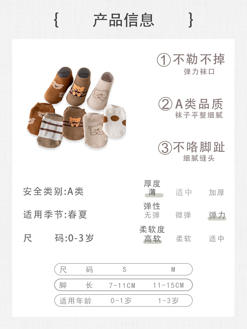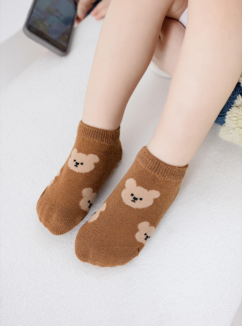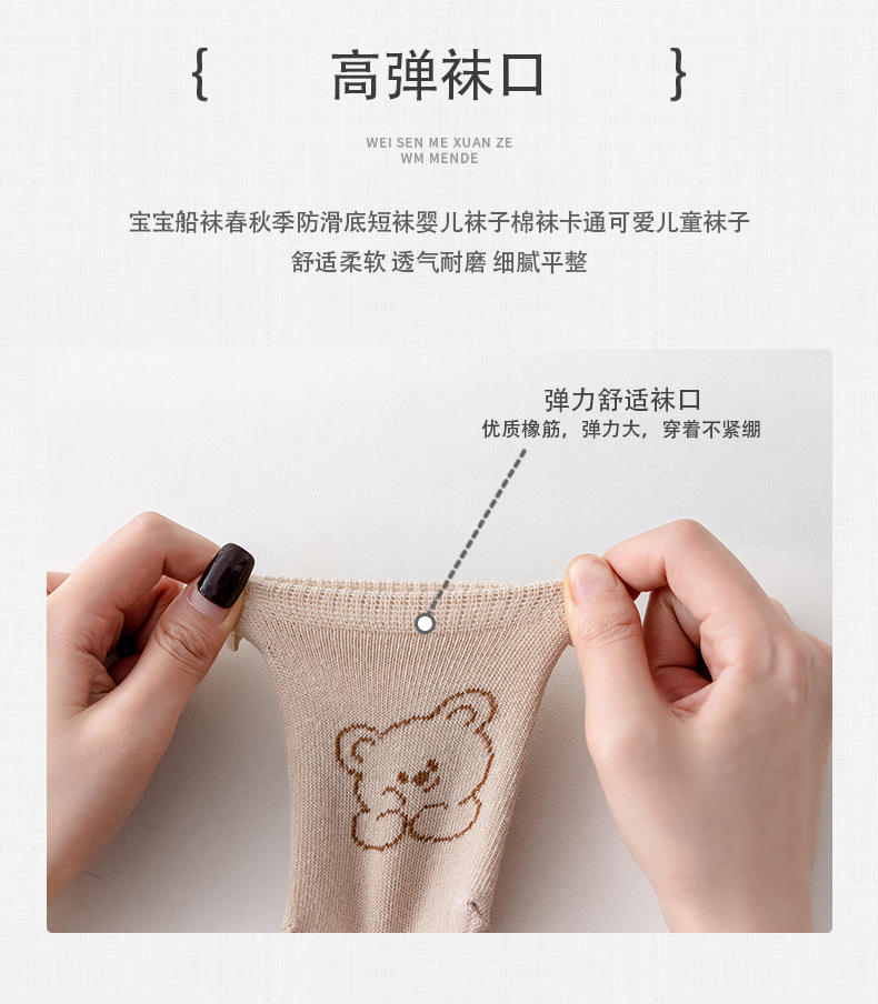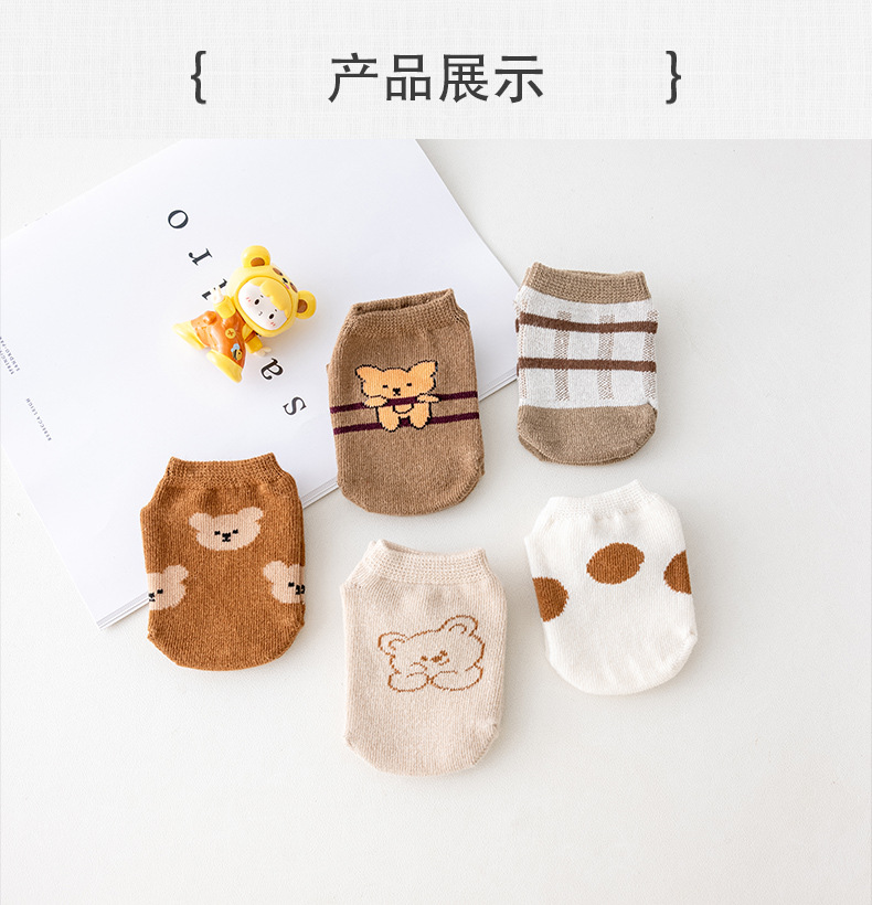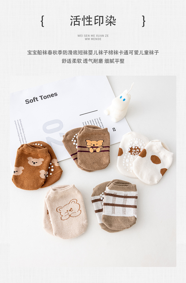 봄, 가을, 겨울 신상품 만화 곰돌이 미끄럼 방지 양말, 어린이용 얕은 입구 편안하고 통기성 좋은 짧은 양말, 아기 바닥 양말 공장스토어 가기