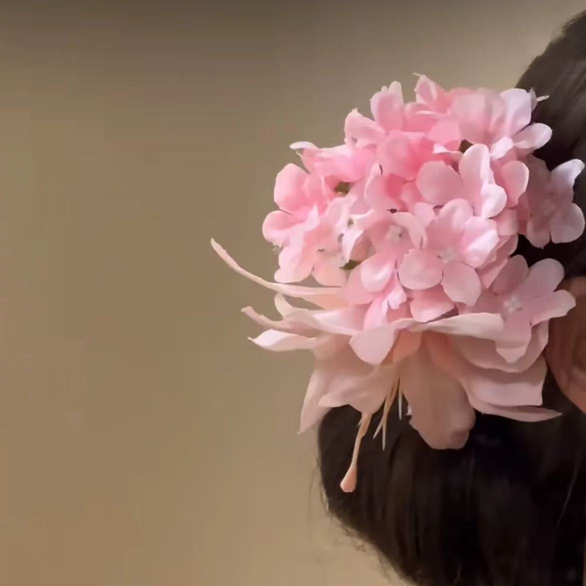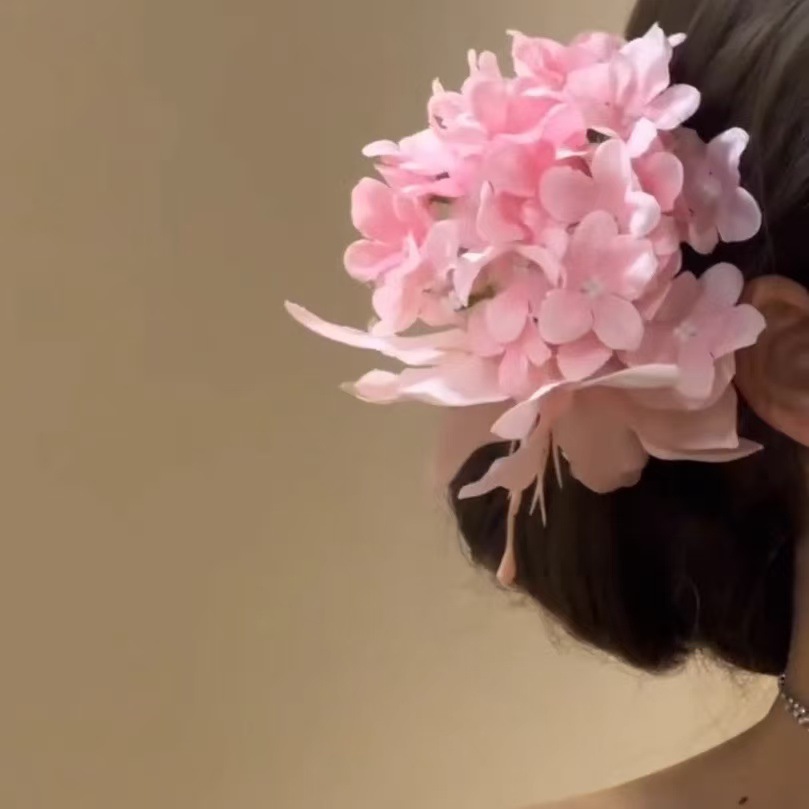 핑크 꽃 수국 헤어핀 여성 골동품 디자인 분위기 사이드 클립 순수한 욕망 스타일 성격 올 매치 헤어 액세서리스토어 가기