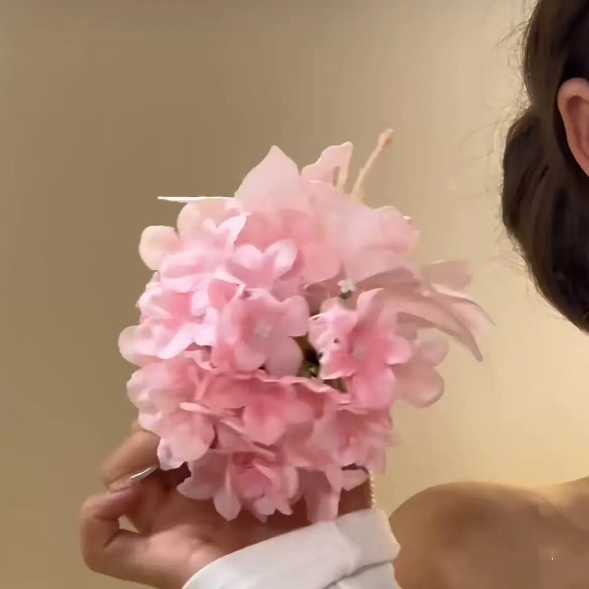 핑크 꽃 수국 헤어핀 여성 골동품 디자인 분위기 사이드 클립 순수한 욕망 스타일 성격 올 매치 헤어 액세서리