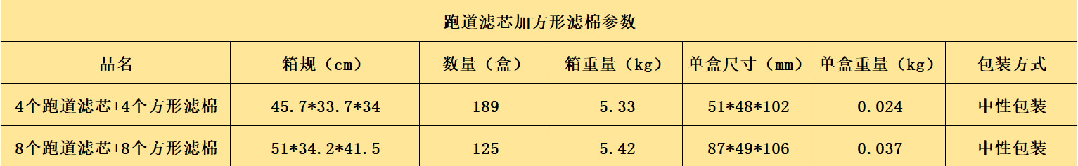 • 활주로 필터 요소 8개 + 정사각형 필터 면 8개